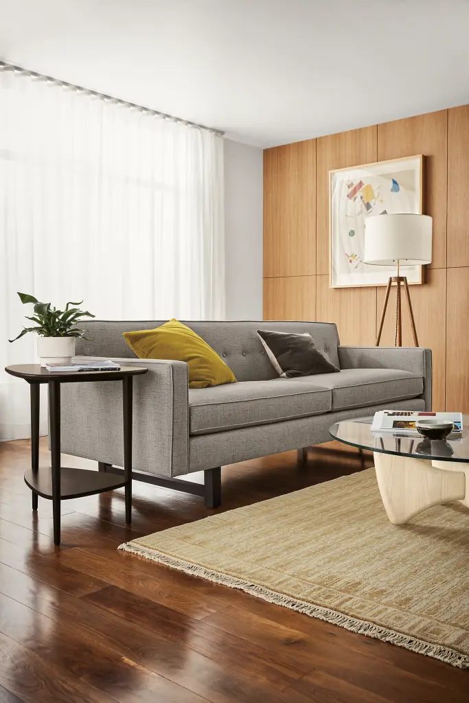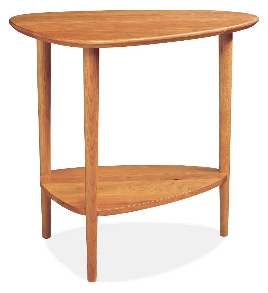 Durable solid wood is transformed into the light, fluid profile of our Gibson end table through the skill of Vermont woodworkers. Softly beveled edges, turned legs and unique contours contribute to this table’s mid-century elegance.