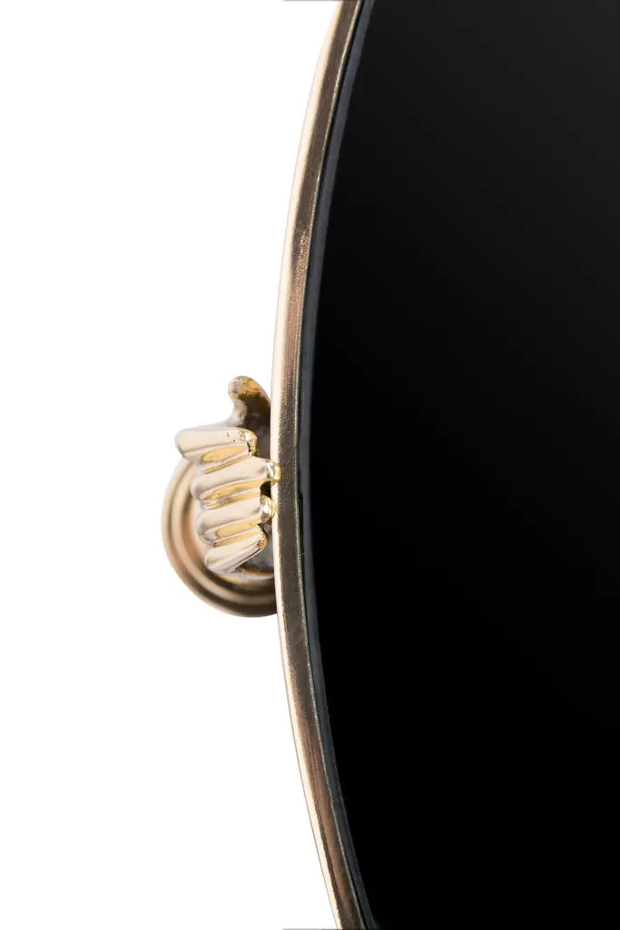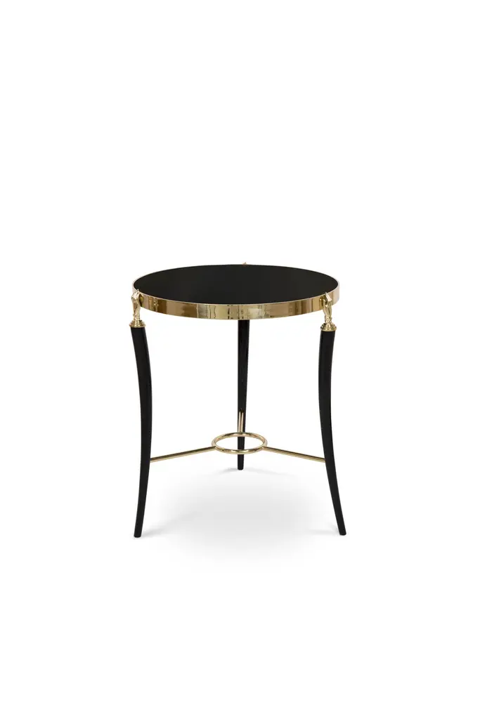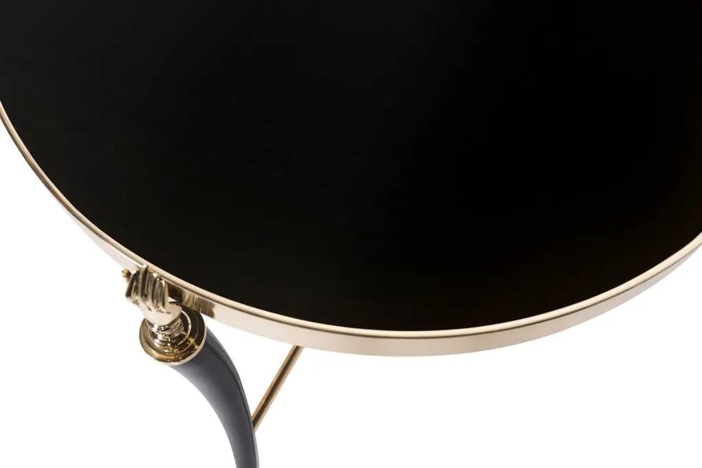 Three elegant Victorian cast brass hands on a delicate tripod base hold an black lacquer top. This luxurious table is sure to be a showstopper in any room.Materials & Finishes: Legs: Black Lacquer (High Gloss Finish)Top: Black Lacquer (High Gloss Finish)Lower Top: Black Lacquer (Matte Finish)Details: Polished Brass (High Gloss Finish)Clean & Care:Clean polished metal or polished stainless with a damp cloth. Do not use commercial or heavy-duty polishes or waxes, as they may scratch or damage the finish. Polishes we do recommend are Brasso, Simichrome, or our favorite Flitz; these can be used without inflicting damage even for the unskilled user, unless the polished surface has a wax sealer coat. These polishes will remove the wax while polishing the metal, but the surface would then have to be re-waxed if it is on a metal that needs to be sealed. Glass and crystal can be cleaned by wiping with a soft damp cloth or glass cleaner with no additives. Apply glass cleaner to a soft cloth rather than directly on to the texture to avoid overspray that may damage other finishes.