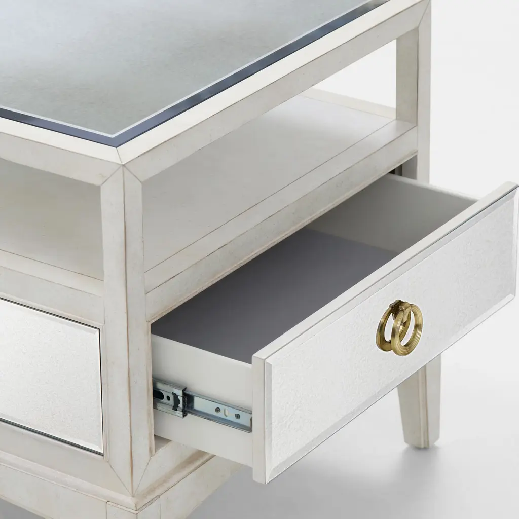 Add some luxe to your living space with the Giselle End Table. Featuring a sleek design with bold finishes and a drawer to keep your essentials nearby.