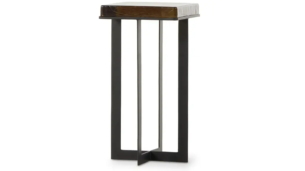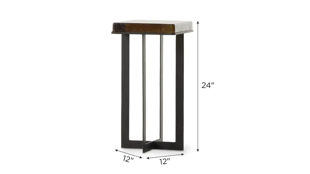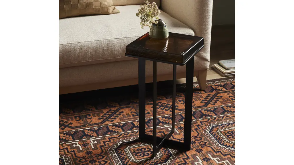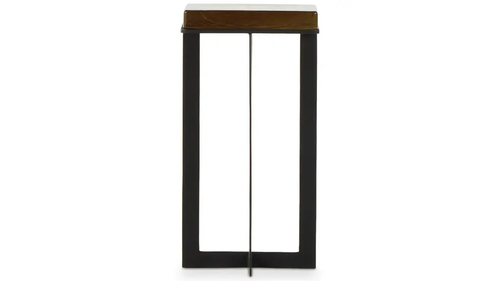 Giselle End Table is perfectly sized to keep your favorite drink or book within reach. A cradle, angular base of black-finished iron supports a squared tabletop of hand-cast recycled glass in a smoky amber.