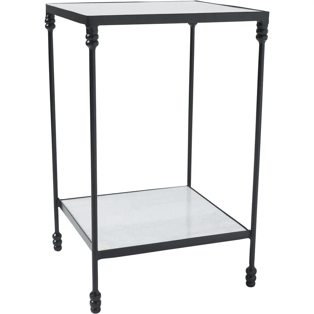 If your design project leans towards a transitional aesthetic, youll want to cast your eyes on this classically styled accent table. Crafted from high-quality materials like iron and natural marble, it is just the piece to deliver luxury and function to any interior. Two levels provide just the right amount of space for creating an elegant display while leaving a spot to rest your favorite drink in style.