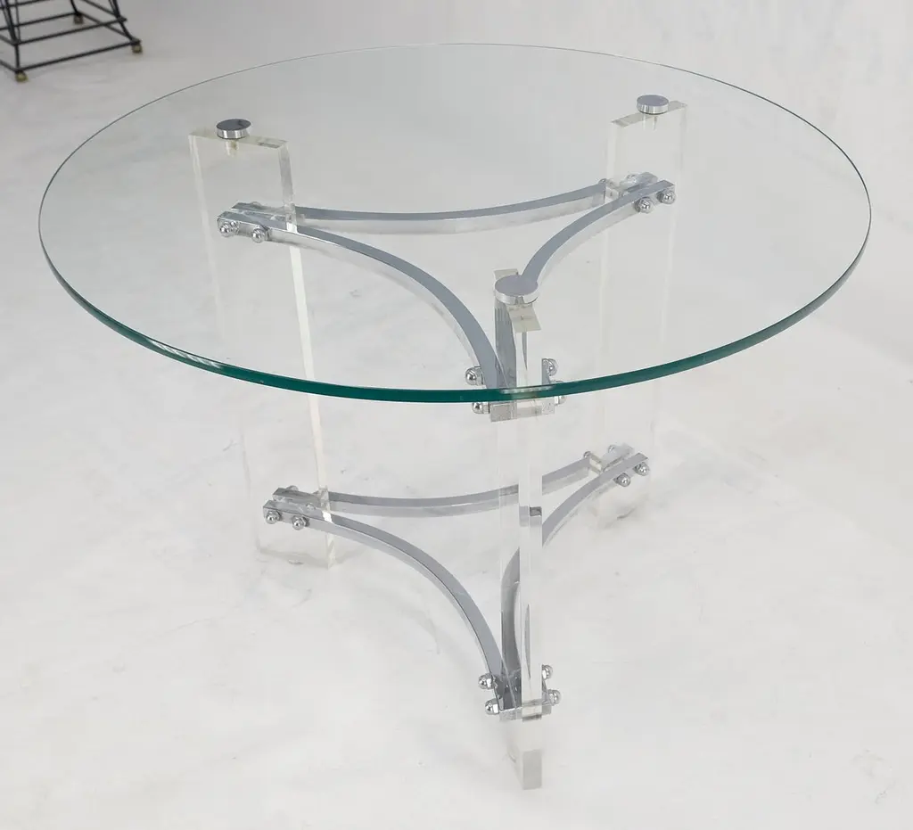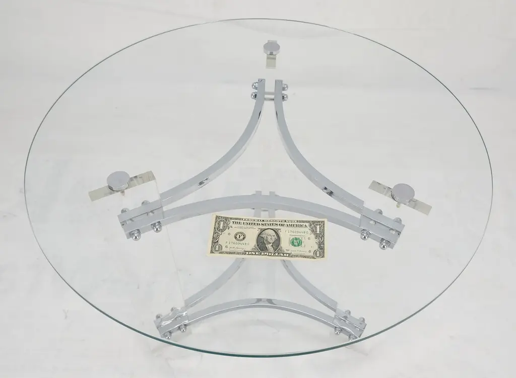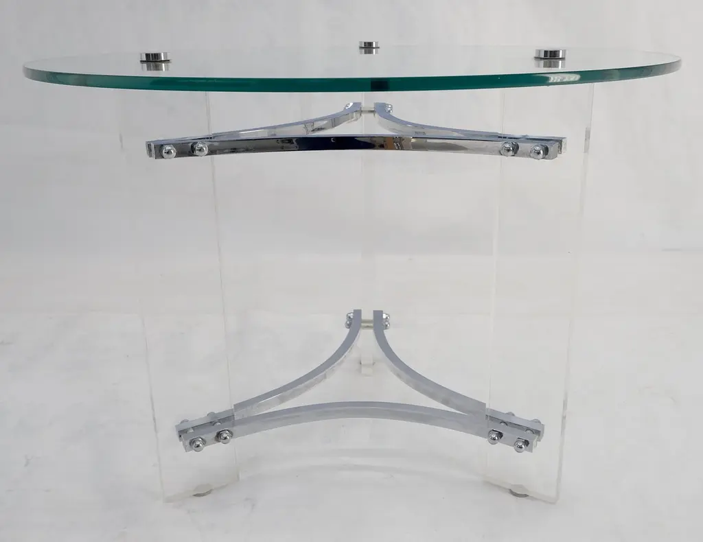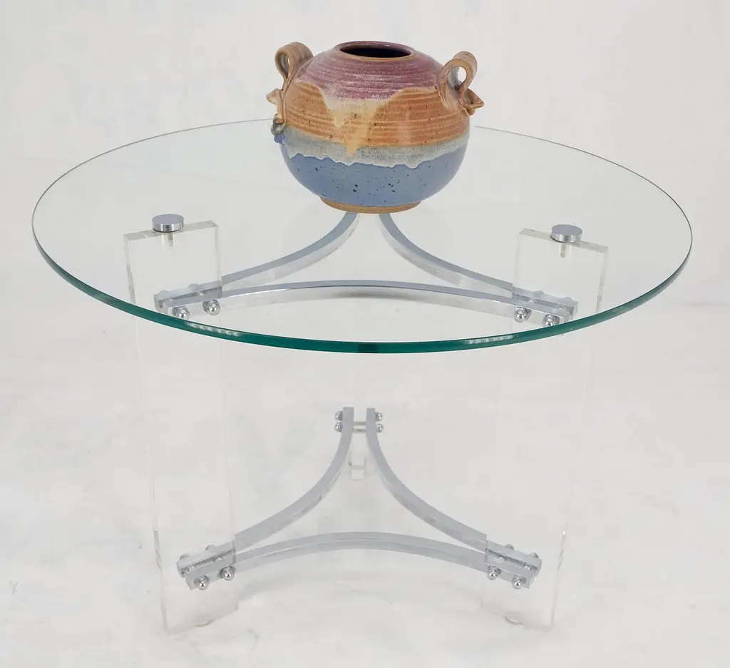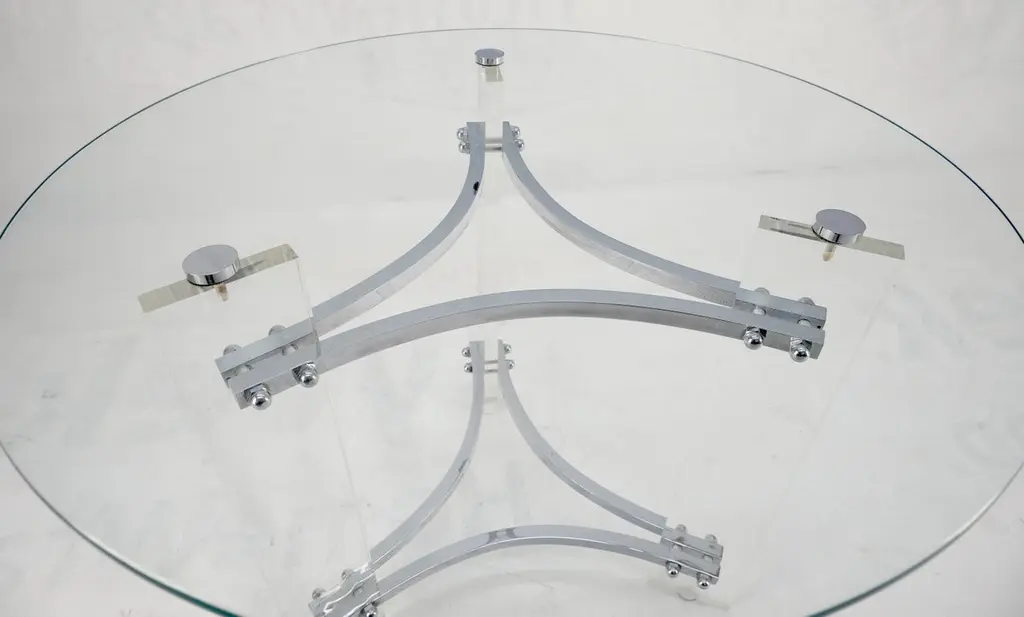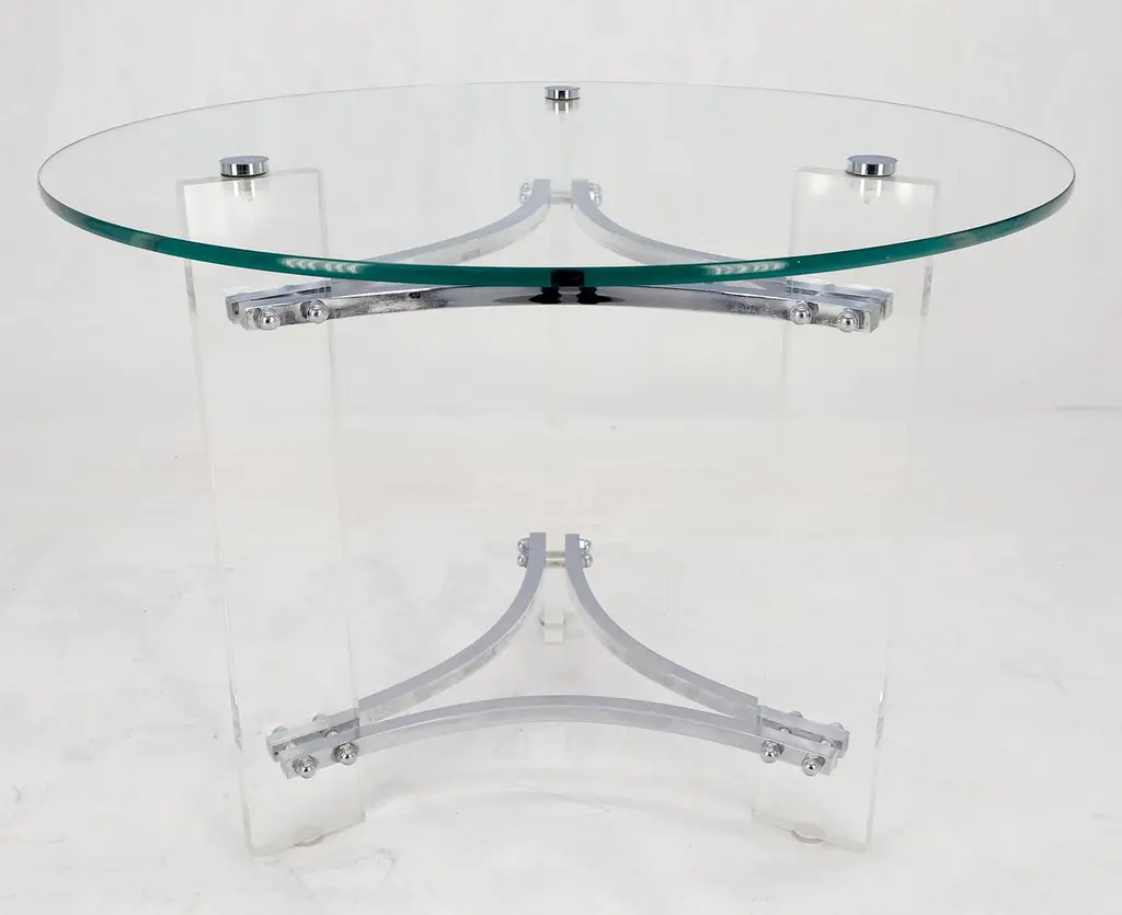 Glass Lucite Chrome Round Center Side Occasional 1970s Two Tier Table Mint!