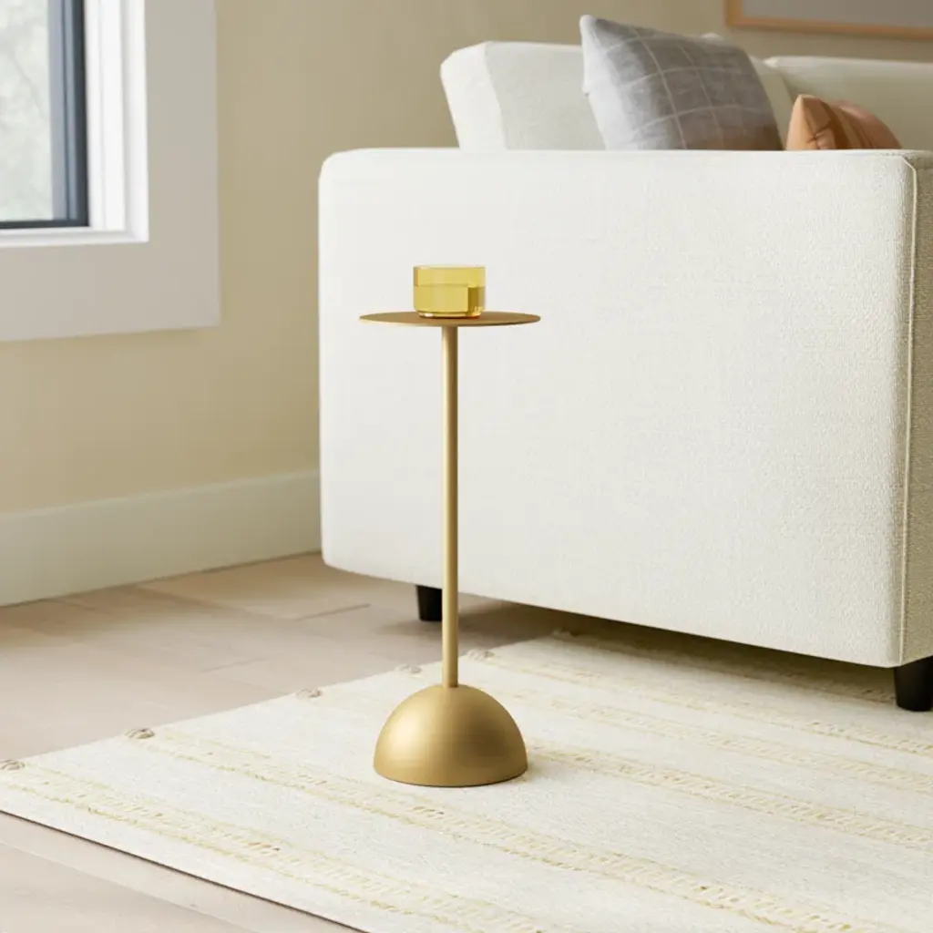 Round and refined, our end table features a smooth aluminum top and pedestal base for a sleek, modern look. Its minimalist design adds a touch of sophistication to any room and makes it the perfect companion for your favorite sofa or armchair. Plus, it's versatile enough to blend seamlessly with a variety of home decor styles. Just sit back, relax, and enjoy this chic addition to your space.