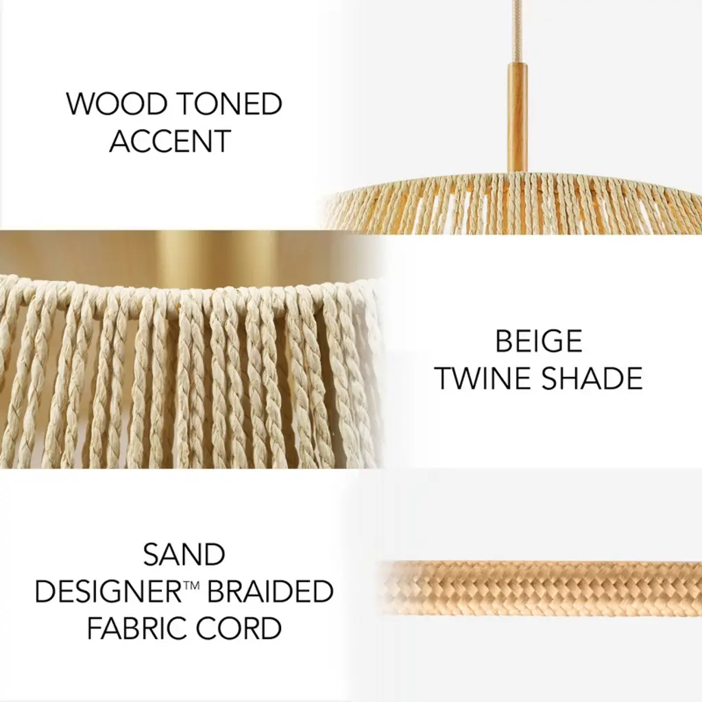 Globe Electric 1-light Wood Toned Pendant Light With Beige Paper Twine Shade: Etl Listed, Adjustable Height, Metal Body
