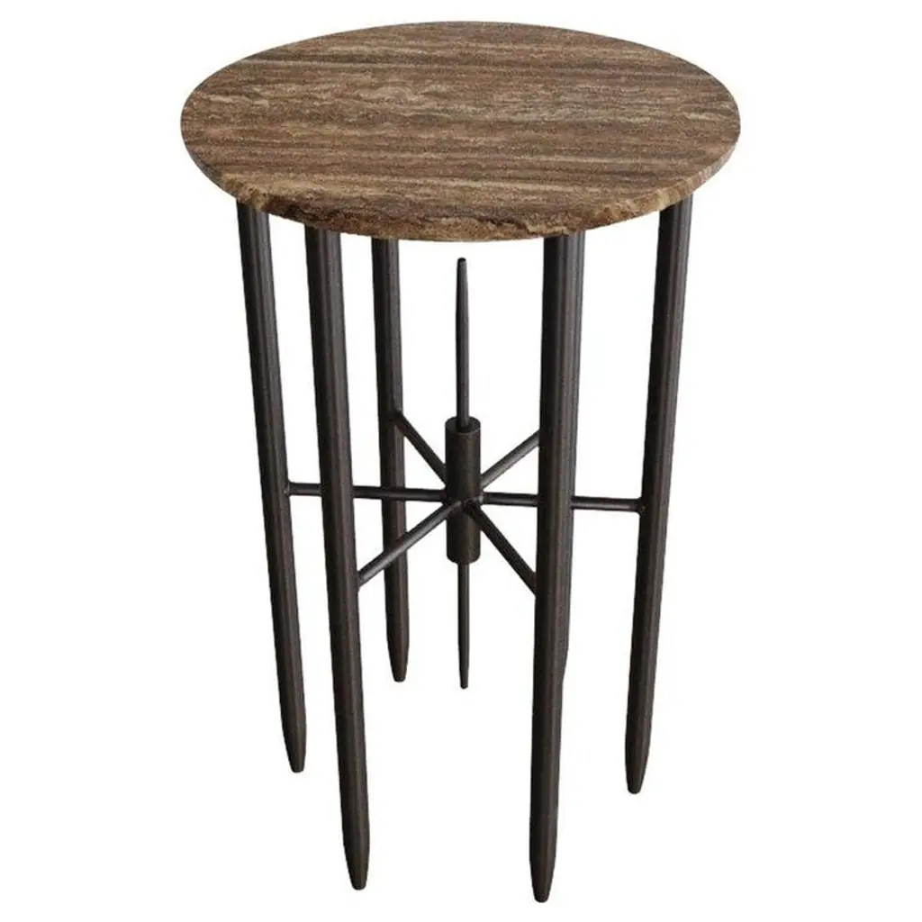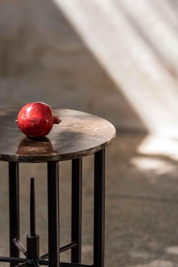 Gol. 005 marble side table by Chapter 101Dimensions: H 60 x D 38 Material: marble (noce travertine)Effortless composition and eccentric design bring forth the Golestan Series. Evoking rich emotions of heritage and culture with each celestial piece of marble and its natural beauty, a table that draws you into a world filled with historical grandeur. Further exploring our desire to connect with both nature and our surroundings.Each piece in our Golestan Series has been carefully crafted by hand using time-honoured methods and tools, creating into works of art, each with its own unique personality and soul. We understand that each space is unique with different style. We offer bespoke marbles from Italy, Spain, France, Turkey, as many alternatives to fulfil your needs and design your space.Chapter 101 is a never-ending story – of taste, of style, of texture and imagination. It is the story of a young Iranian dreamer, who observed the world and lost herself in fascination at what she saw: the geometry of nature, of architecture, of people and their feelings. As years past, she travelled the region and beyond, discovering new stories and shapes – sketching, interpreting and layering. Today, Chapter 101 is the interpretation of life through bespoke interior design. Each piece tells its own narrative and expresses unique emotional patterns. Rooted in Middle Eastern culture, it is structural and multi-dimensional. Ultimately, our design is here to add stories to your life – to shape your space, stoke dinner party.