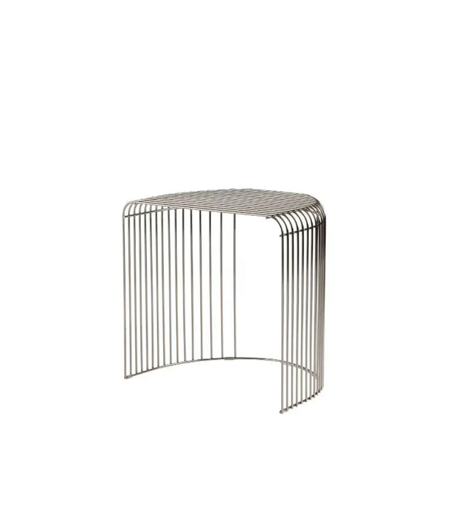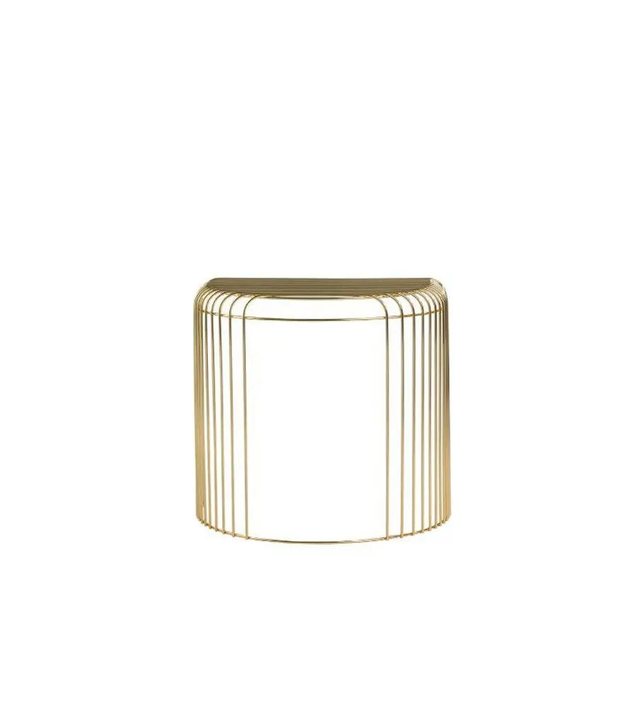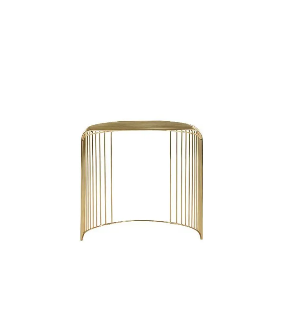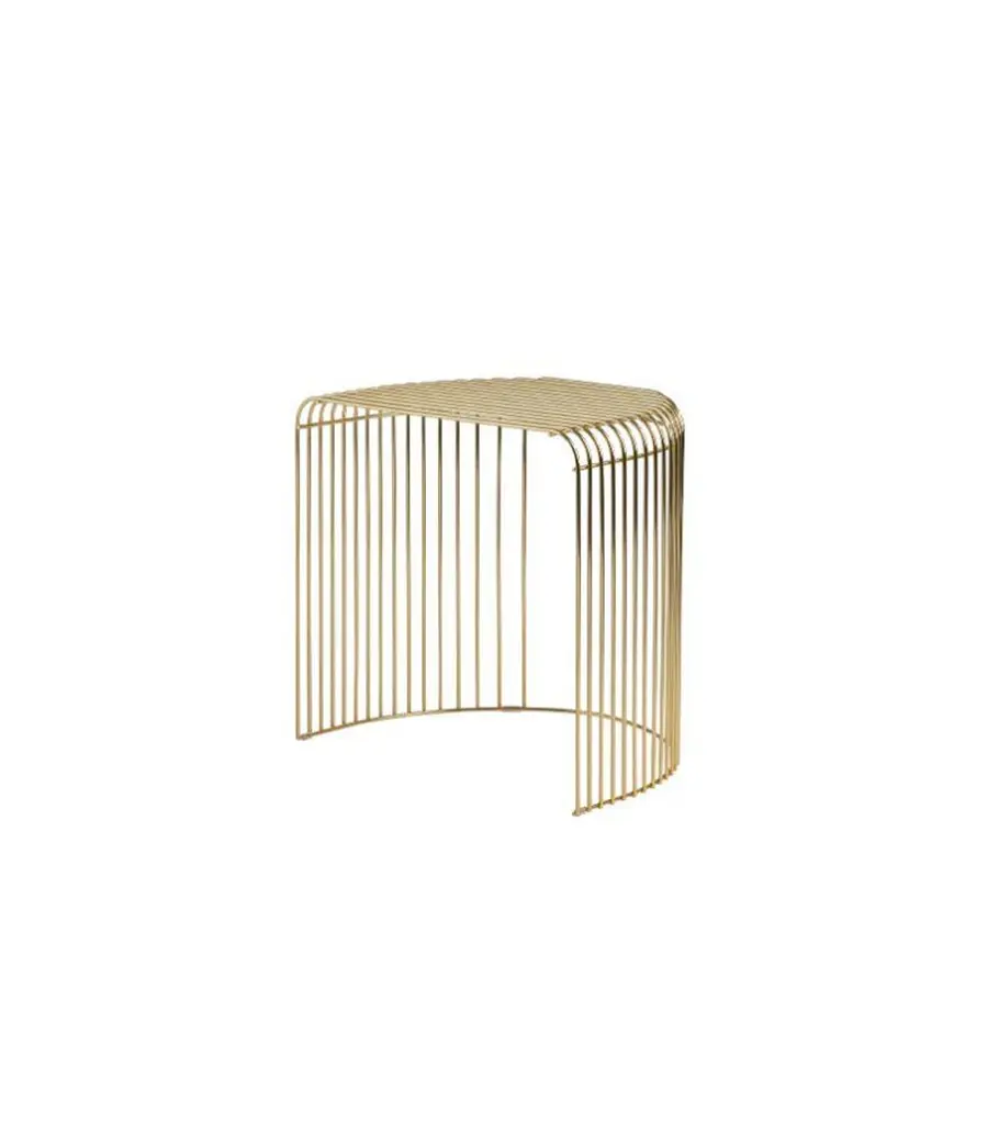 Gold Contemporary side tableDimensions: L 34 x W 48 x H 45 cm Materials: Steel.Also available in silver and black. The ever-popular CURVA collection is growing with a minimalistic, graceful, and multifunctional side table. As with any CURVA item, this table is a pure statement on its own but also concludes the perfect trio when combined with the new SESSION collection. Use it as a bedside table or by the couch in a living space. The elegance of the design makes the opportunities countless. Only your creativity sets the limits.