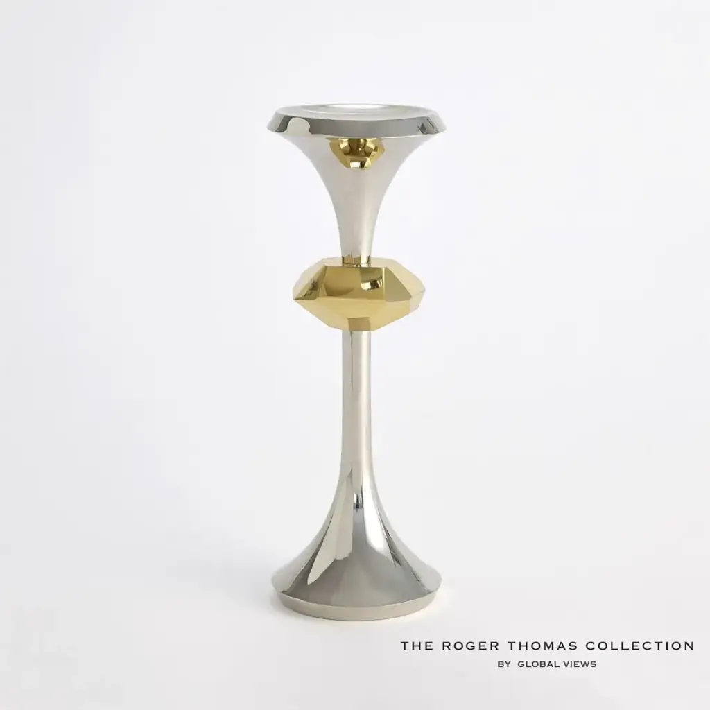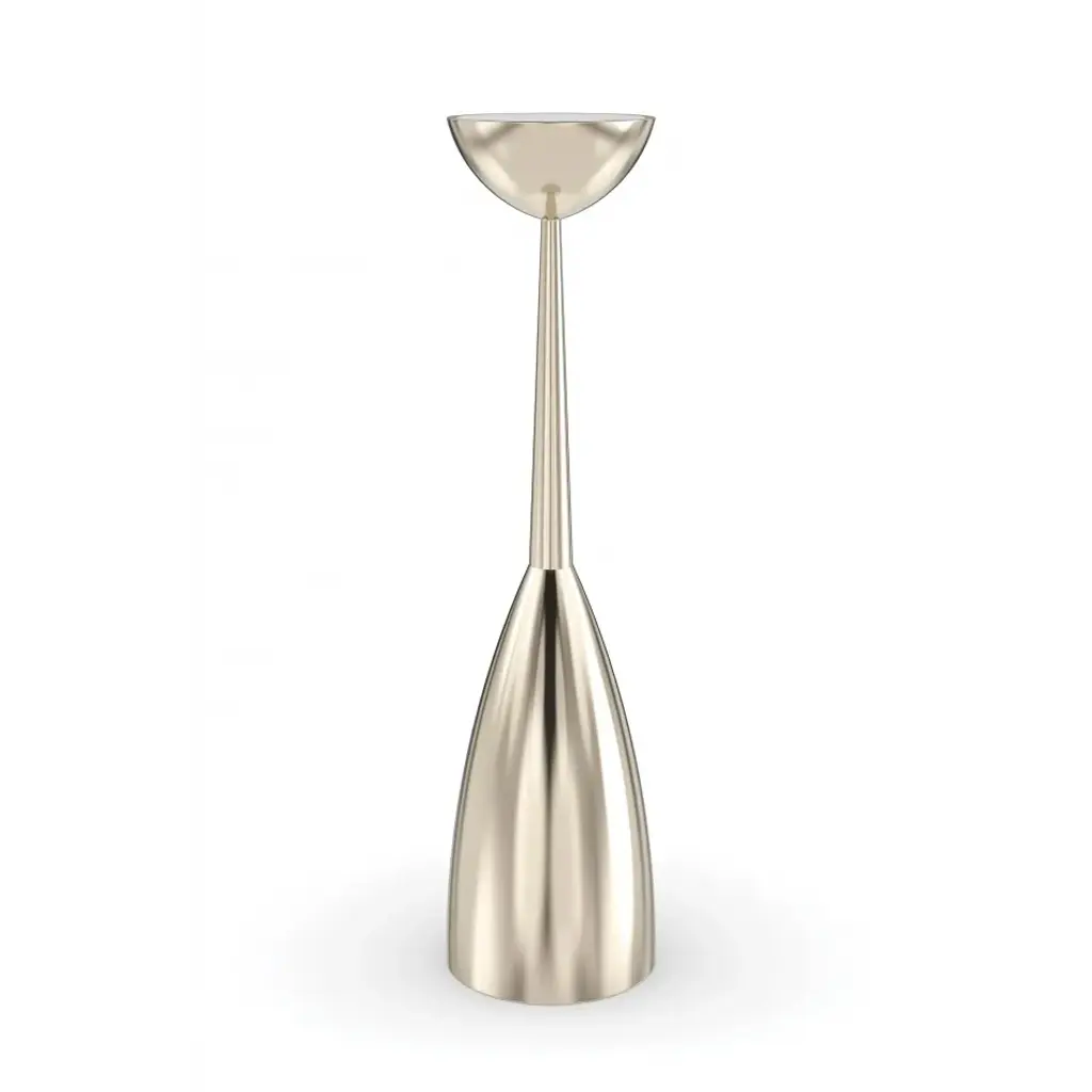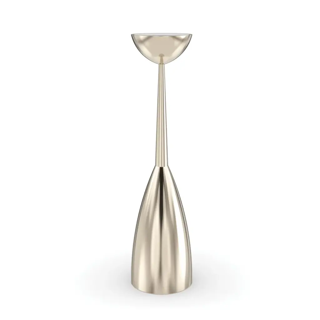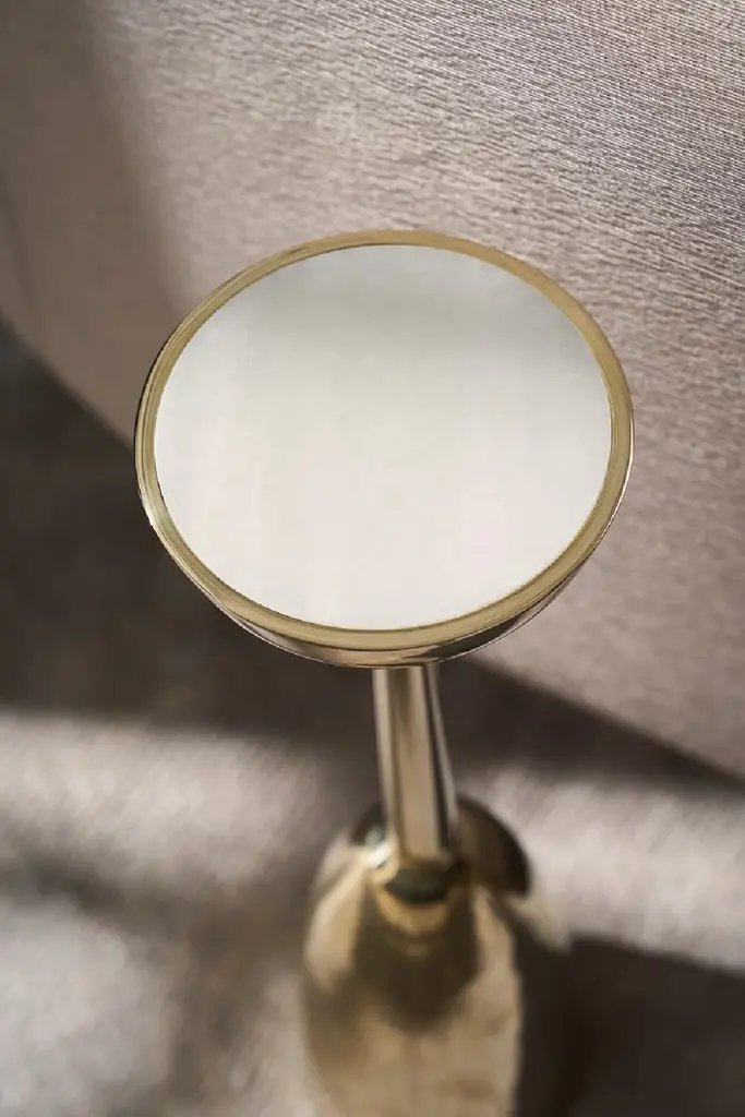 A nod to the streamlined style of a midcentury candlestick, this spot table is well-scaled for reading nooks and larger spaces designed for entertaining. It features a white stone top inset like a precious gem into its slender metal frame, balanced by a sturdy base in a Whisper of Gold. Pair with our Alpha and Beta accent tables to create composition, or style solo for ease of use and convenience.