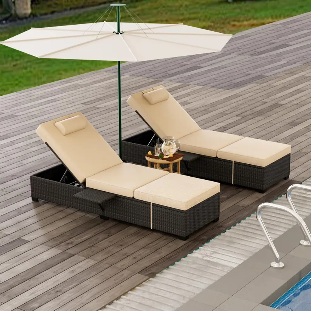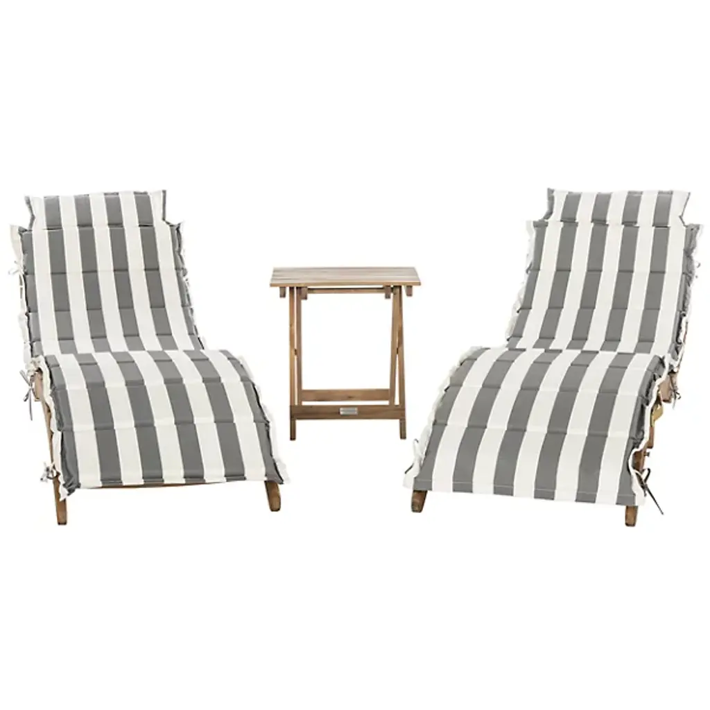 The Goleta 3 Piece Outdoor Lounge Set from Alder & Ore reinvents lounging with its well-planned arrangement. Each acacia wood piece displays expert craftsmanship, from the reclined lounge chairs to the practical side table. The polyester cushions maintain their resilience while providing exceptional comfort. UV-treated materials ensure longevity in outdoor settings, while galvanized steel hardware adds structural integrity. The set's proportions create an intimate conversation area that works equally well for solo relaxation. Its versatile design makes it perfect for poolside, patio, or garden placement.
