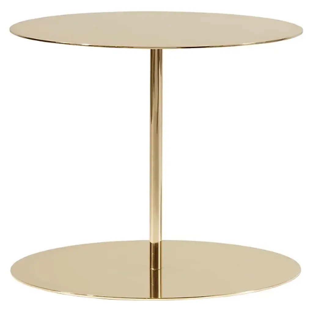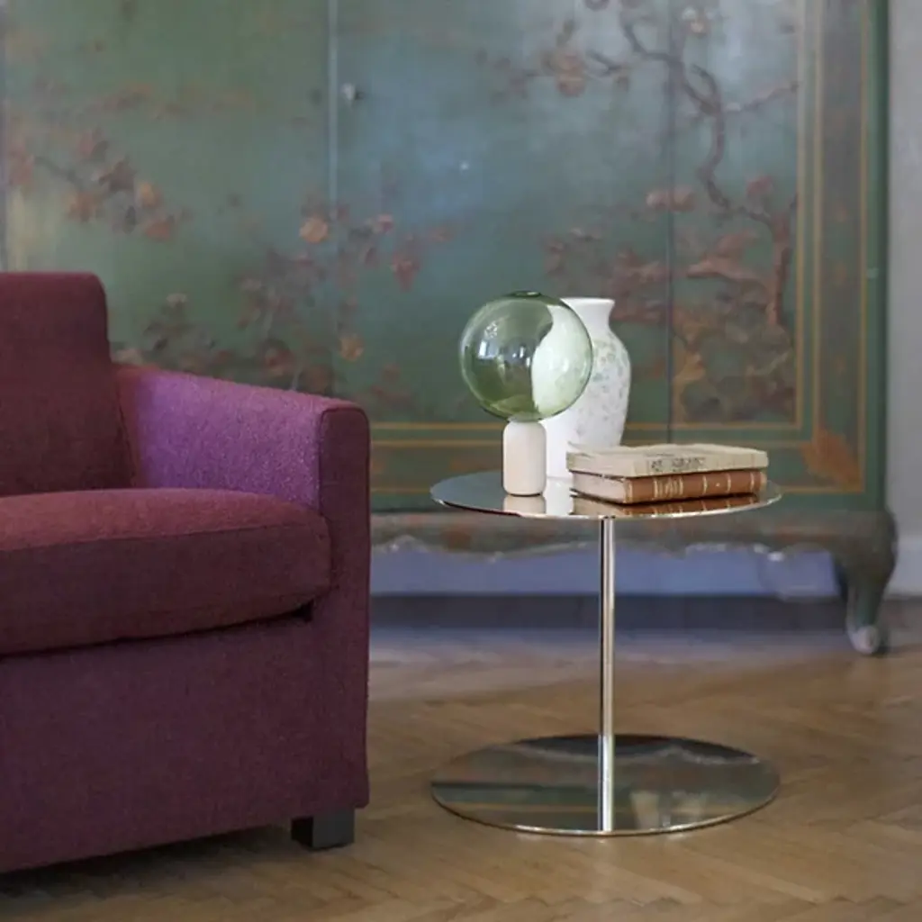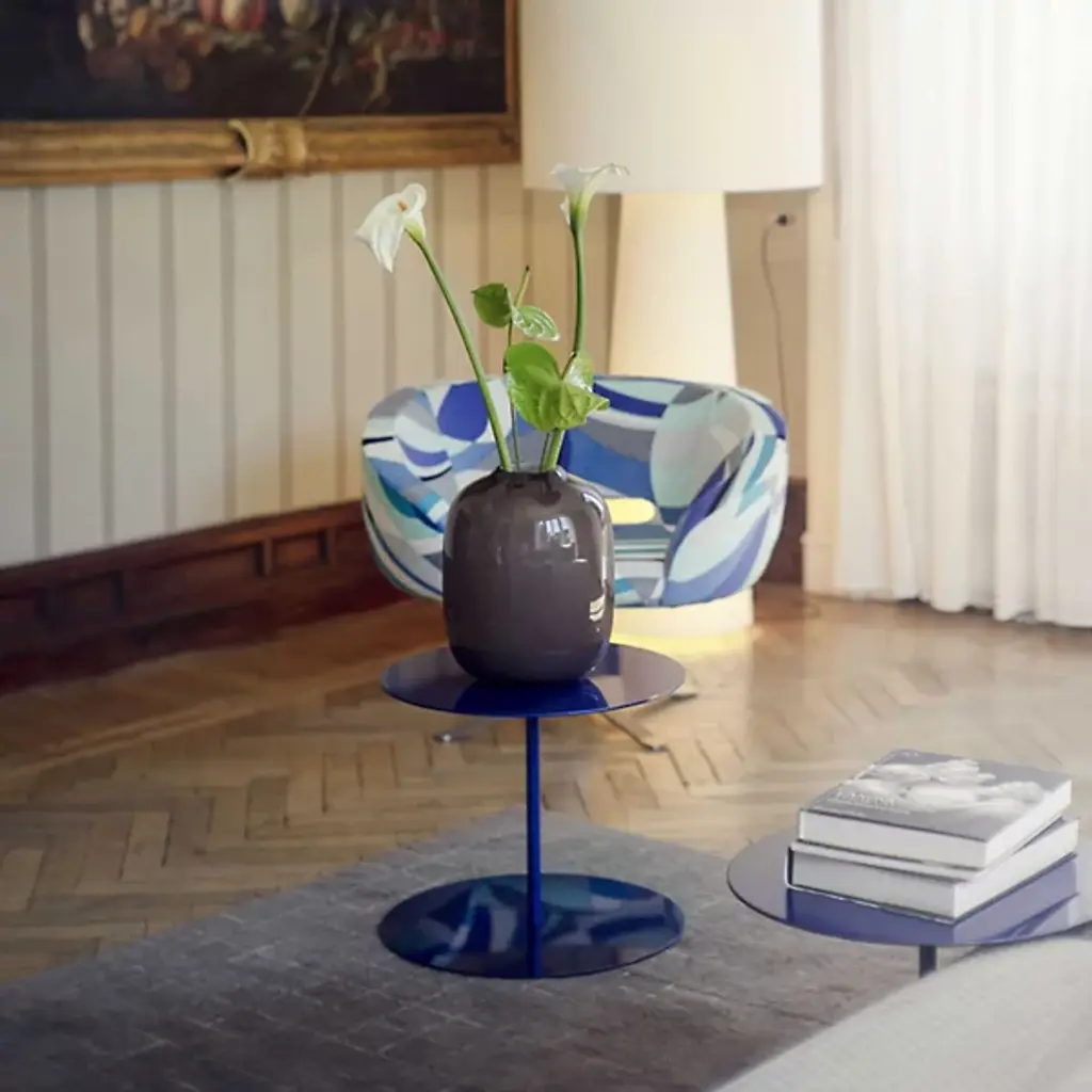 The chic Gong Lux Side Table from Cappellini brings a look of refinement to your home décor. This side table boasts a streamlined design and is composed of fine metal. Your table is designed by Giulio Cappellini, a celebrated architect trained in Milan. Cappellini is the recipient of the Compasso d’Oro Career Award, making your elegant side table a wonderful accent piece. The circular tabletop showcases a geometric motif which is continued in the base. A slender stem keeps the table well-supported while providing an uncluttered presentation. The table’s flat surface provides space for stacked books and accessories.