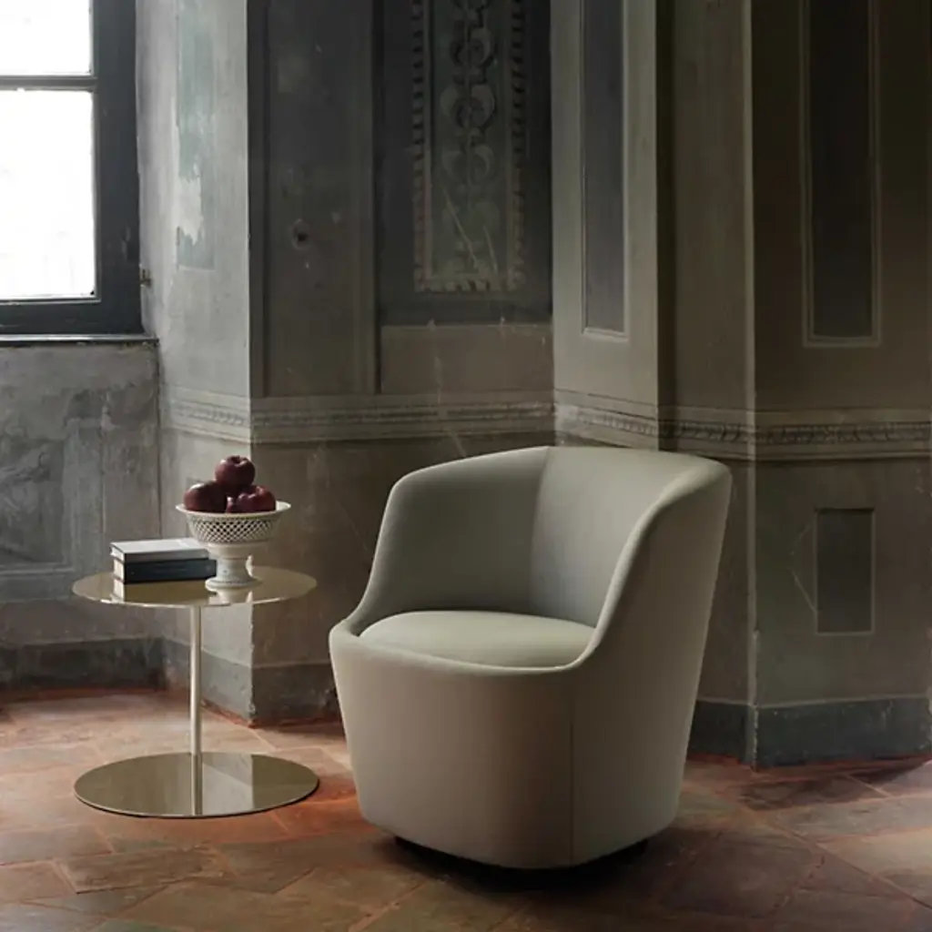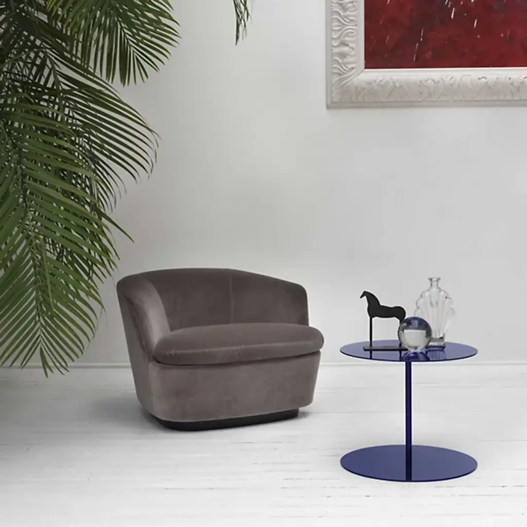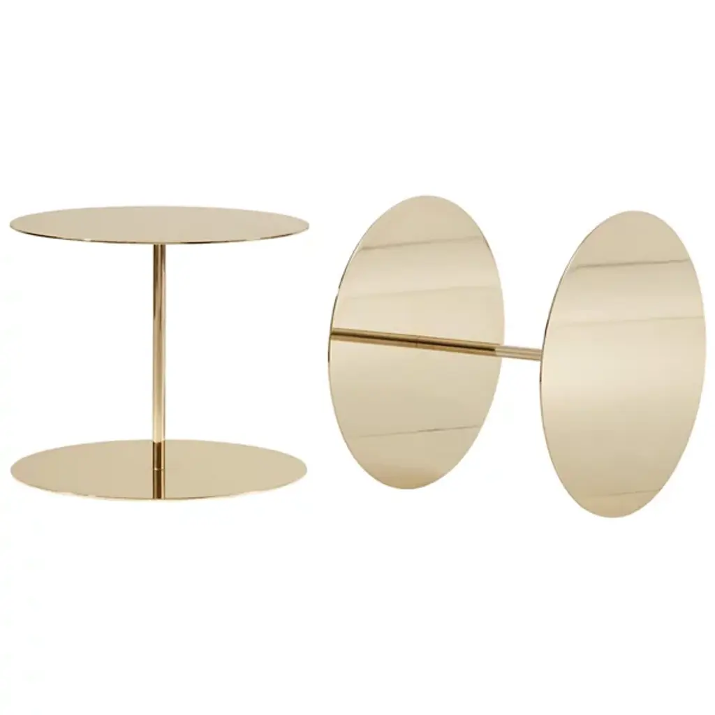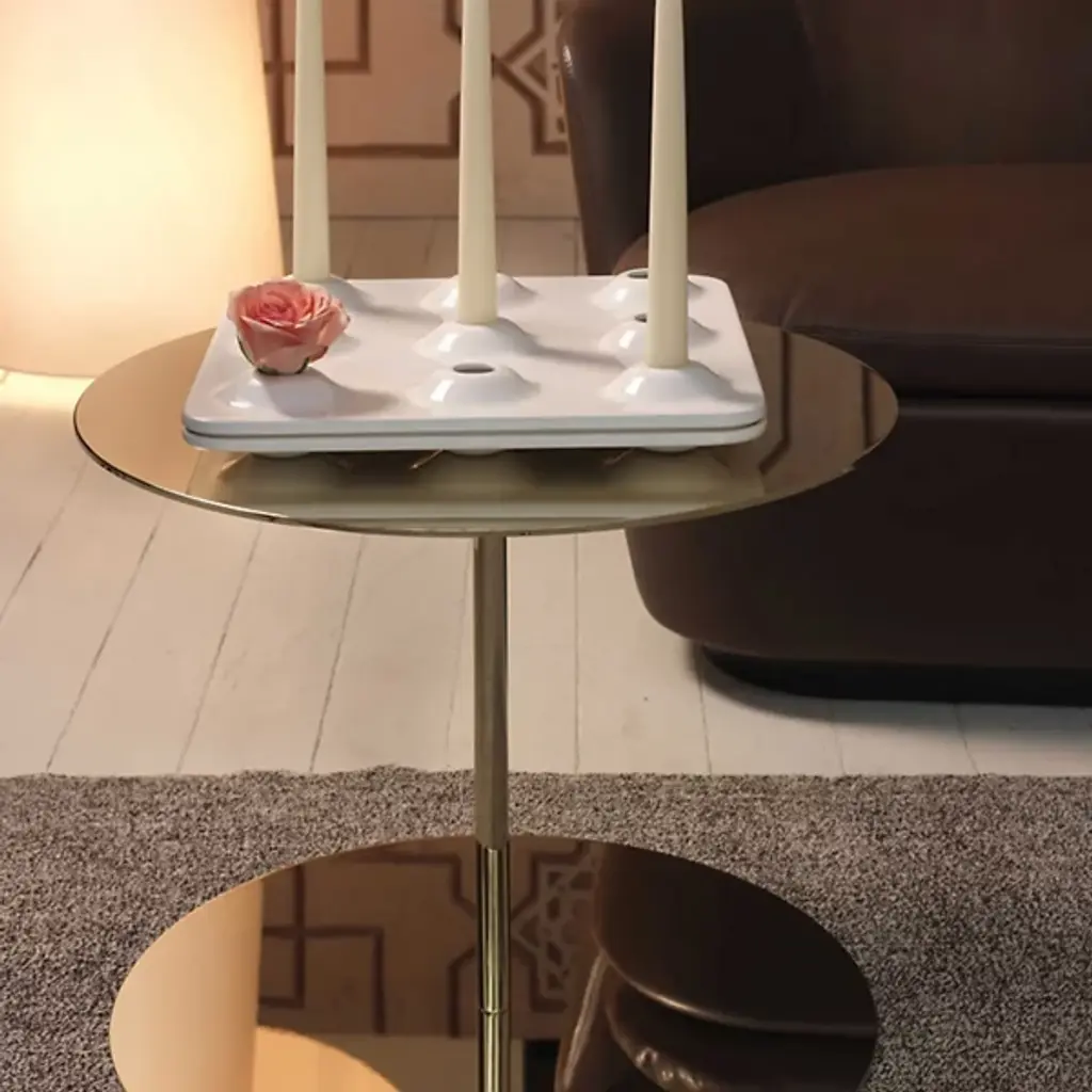 The chic Gong Lux Side Table from Cappellini brings a look of refinement to your home décor. This side table boasts a streamlined design and is composed of fine metal. Your table is designed by Giulio Cappellini, a celebrated architect trained in Milan. Cappellini is the recipient of the Compasso d’Oro Career Award, making your elegant side table a wonderful accent piece. The circular tabletop showcases a geometric motif which is continued in the base. A slender stem keeps the table well-supported while providing an uncluttered presentation. The table’s flat surface provides space for stacked books and accessories.
