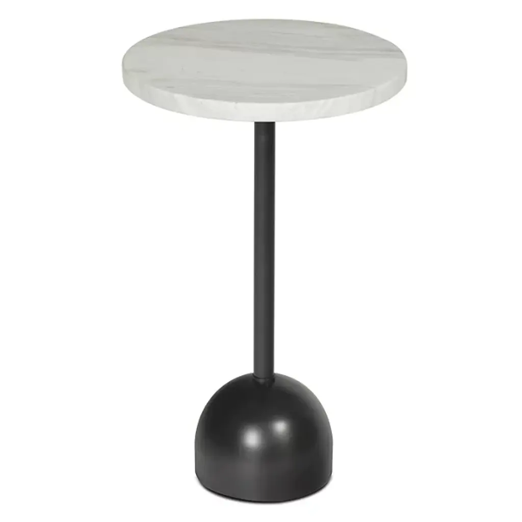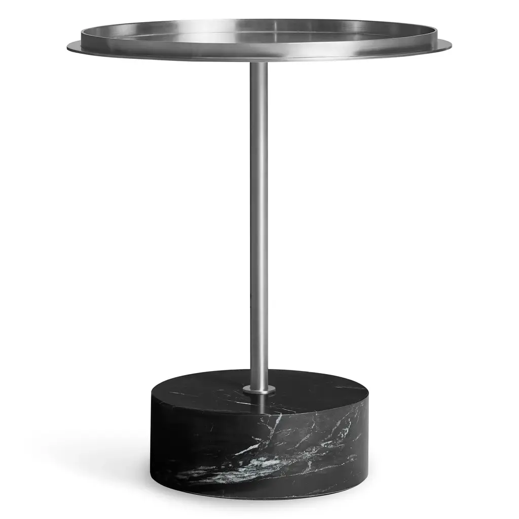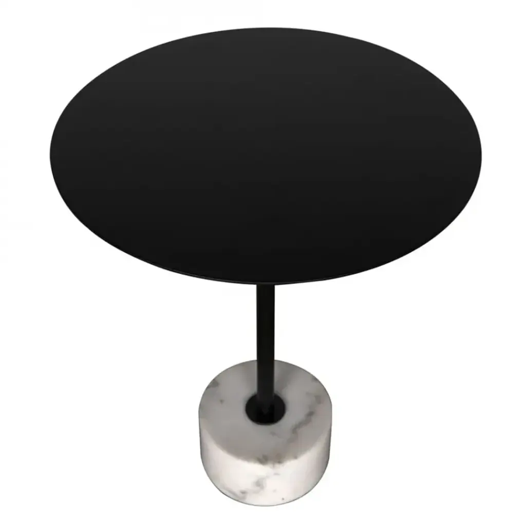 The Govinda Side Table in Matte Black combines industrial strength with refined elegance. Crafted from industrial steel and featuring a striking white marble base, this table brings a sophisticated touch to any room.