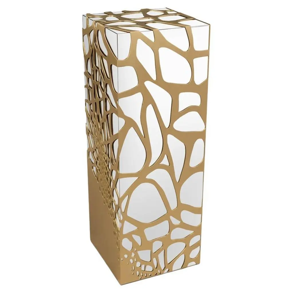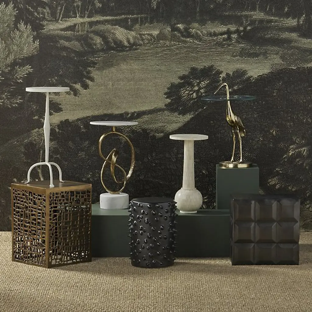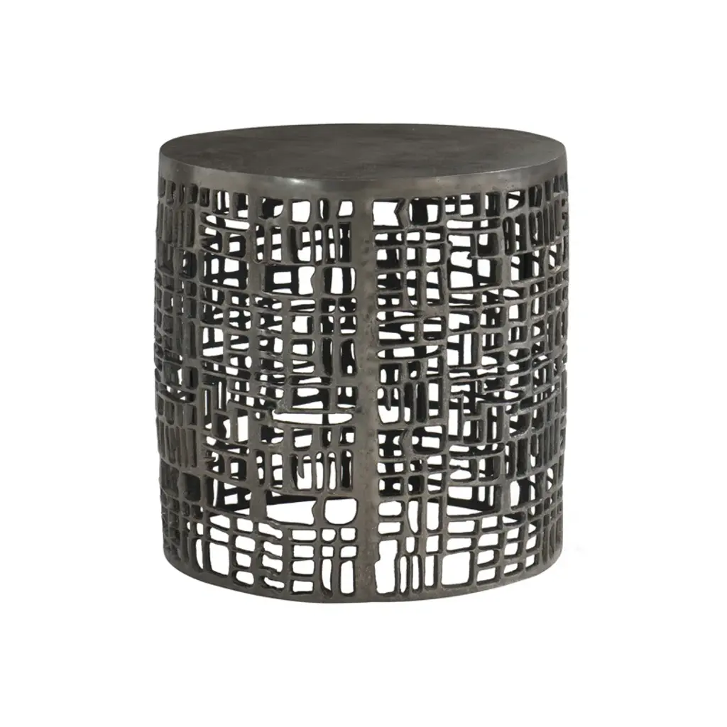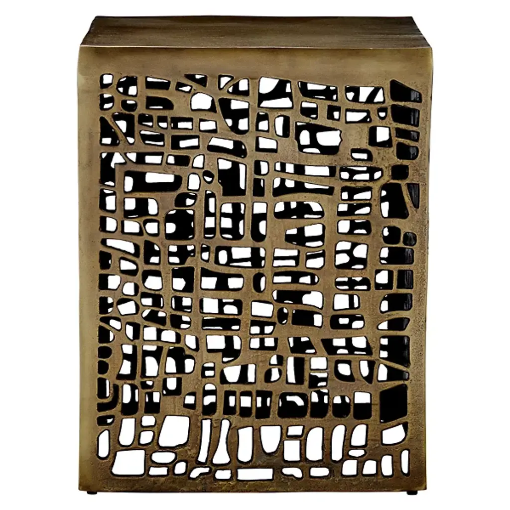 The Gowen Accent Table from Currey & Company brings airy artistry to any space with its bold sculptural form and rich texture. Made from cast aluminum in an antique brass finish, its surface features an abstract pattern that flows across all sides, lending a brutalist-inspired edge. The solid top showcases the raw beauty of the casting process, with stippled details adding depth and character. A statement-making piece, it is futile to resist this elegant blend of function and art, perfect for modern or eclectic interiors.