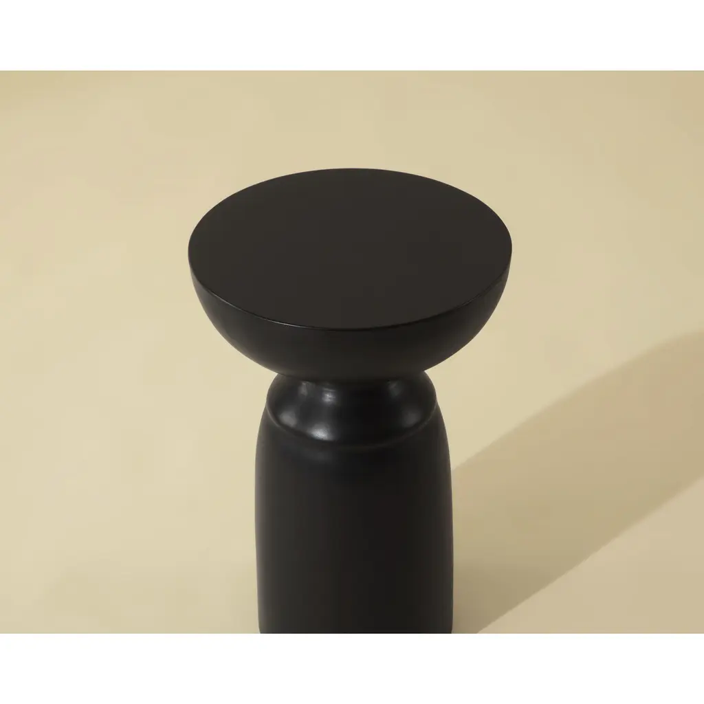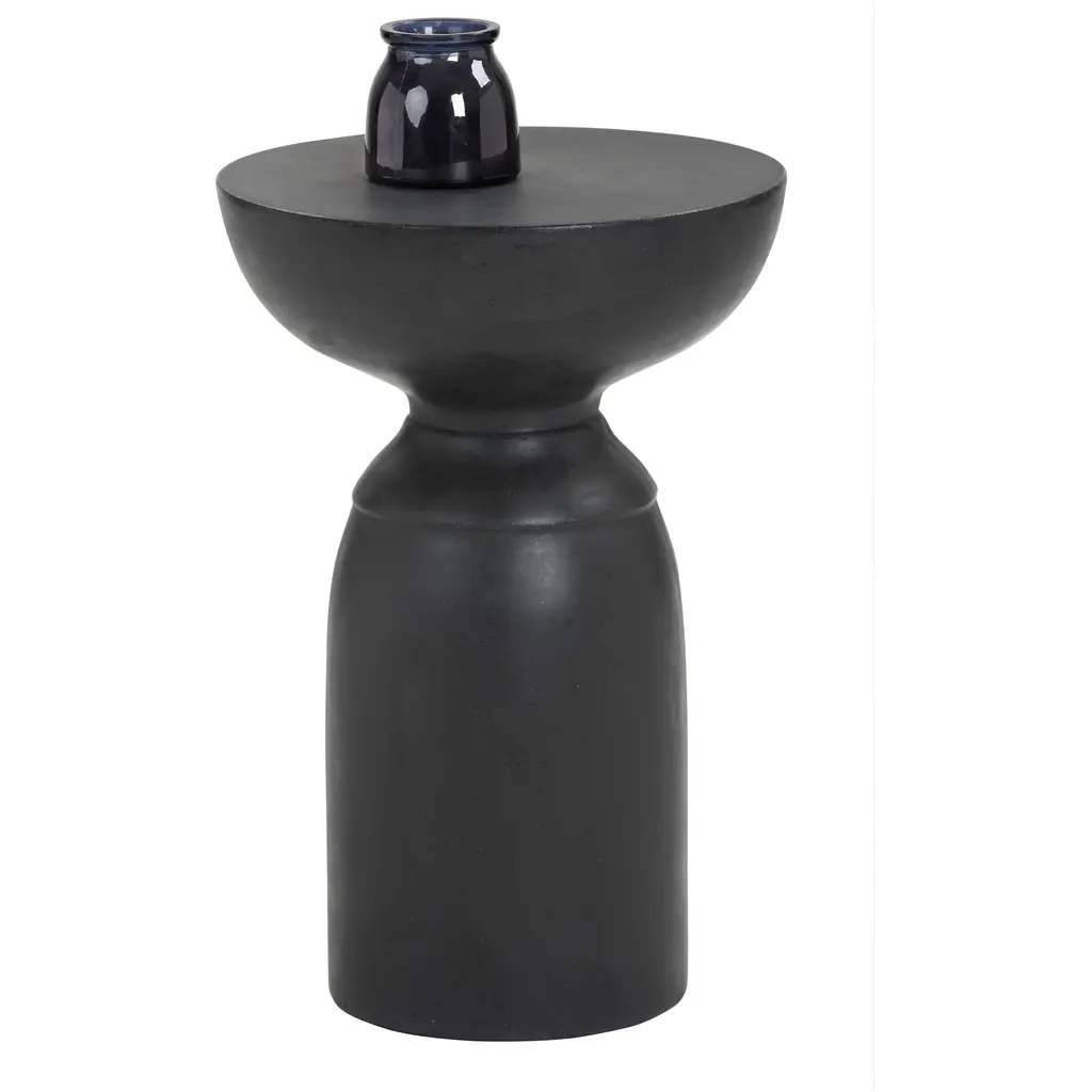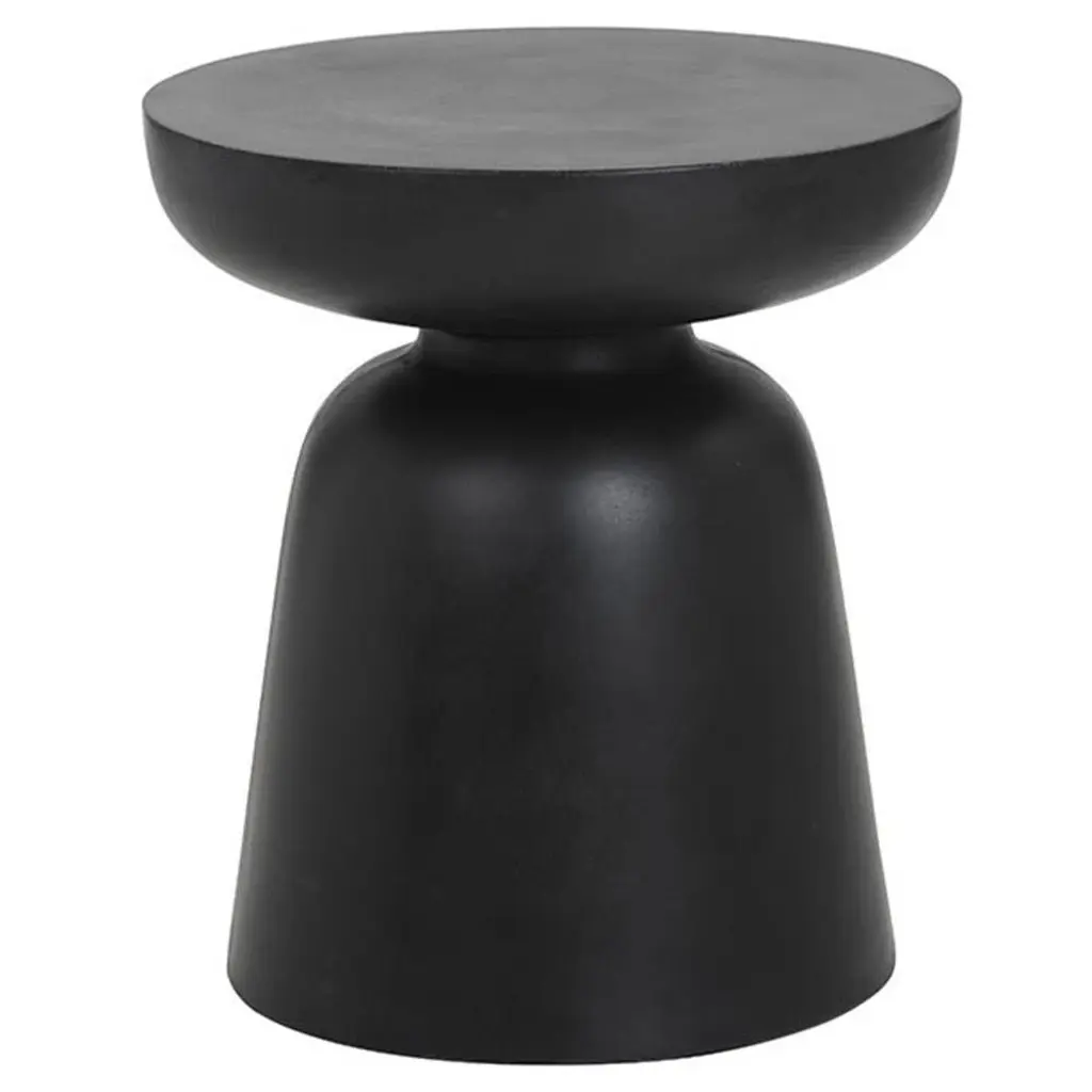 A compact and gracefully sculpted end table. Made from concrete with a painted black finish. This versatile and attractive piece is