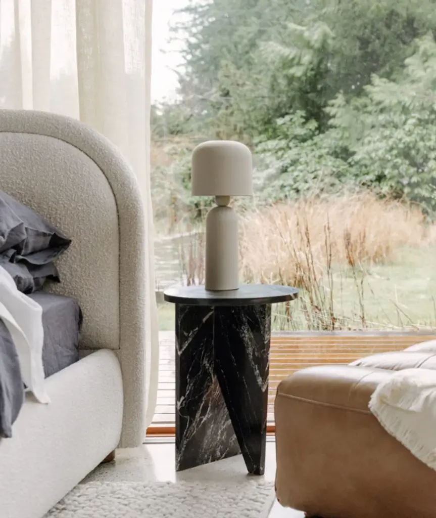 Celestial shapes to set the tone. The Grace accent table is a sculptural, tranquil beauty that will bring effortless calm to your living space. Crafted from solid marble or wood, the natural elements of this piece come together in bold geometric shapes. The sleek versatility of Grace's design means you can use it as an accent table, an end table, or even a nightstand. Elemental and organic, the Grace accent table is a serene style for your space.