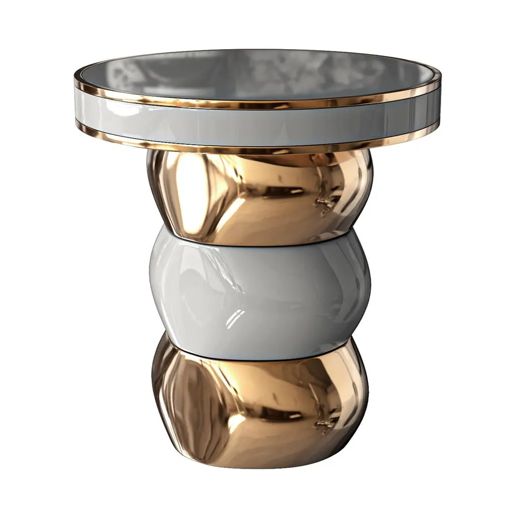 "Gradino" Side Table With Bronze And Stainless Steel, Handmade, Istanbul