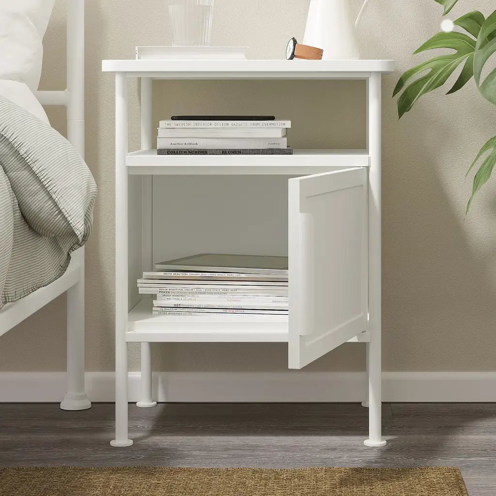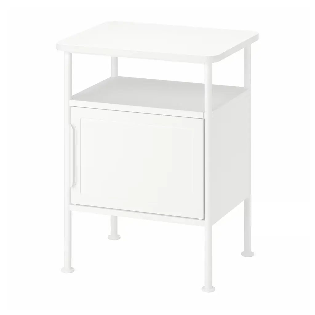 GRÅFJÄLLET Nightstand - white 17 3/4x14 1/8x23 1/4 ". Inspired by traditional factory and industrial environments with clean, bold lines and details like visible metal joints and fittings. Keep the phone separate from the water glass by placing it on the open shelf under the table top.