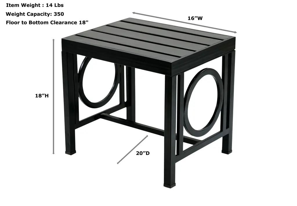 Sleek, sturdy, and effortlessly stylish, our Grammercy Outdoor Side Table brings contemporary flair to any indoor or outdoor setting. With clean lines, a slatted top, and bold circular side accents, this table combines architectural interest with practical versatility.Crafted from durable powder-coated metal, it’s built to resist the elements while maintaining its modern edge. Use it as a side table on your patio, a plant stand in your sunroom, or a minimalist nightstand indoors. Its lightweight frame makes it easy to move wherever a touch of function and flair is needed.Whether you're creating a cohesive outdoor lounge or looking for a bold modern accent, this table is a smart and stylish choice.Pair with our Grammercy Outdoor ChairComes fully assembled.