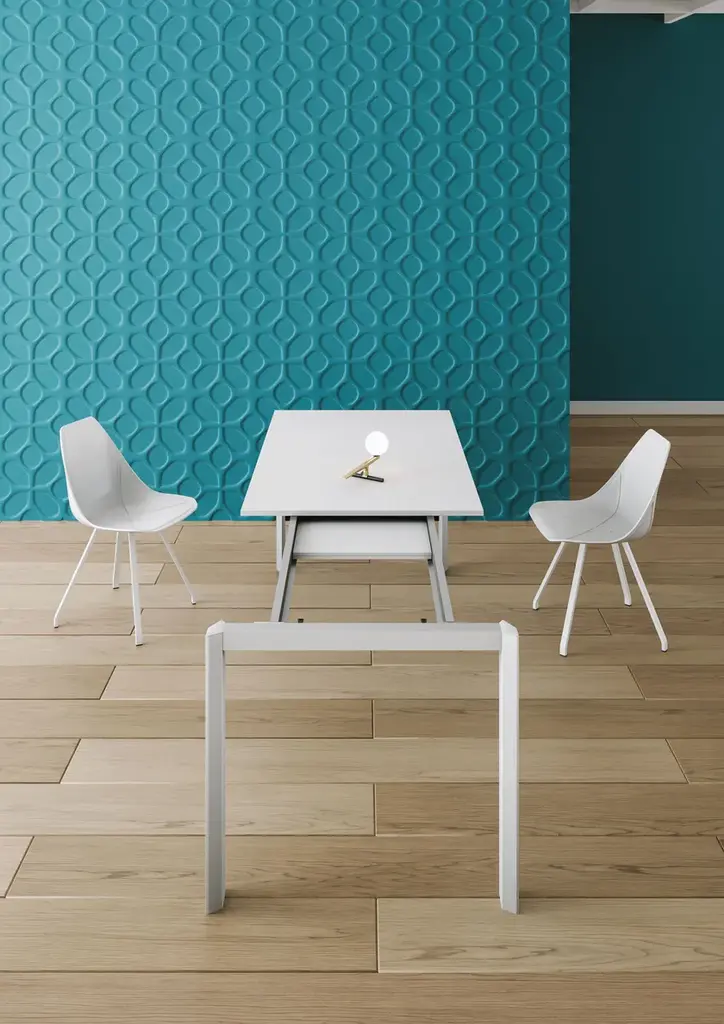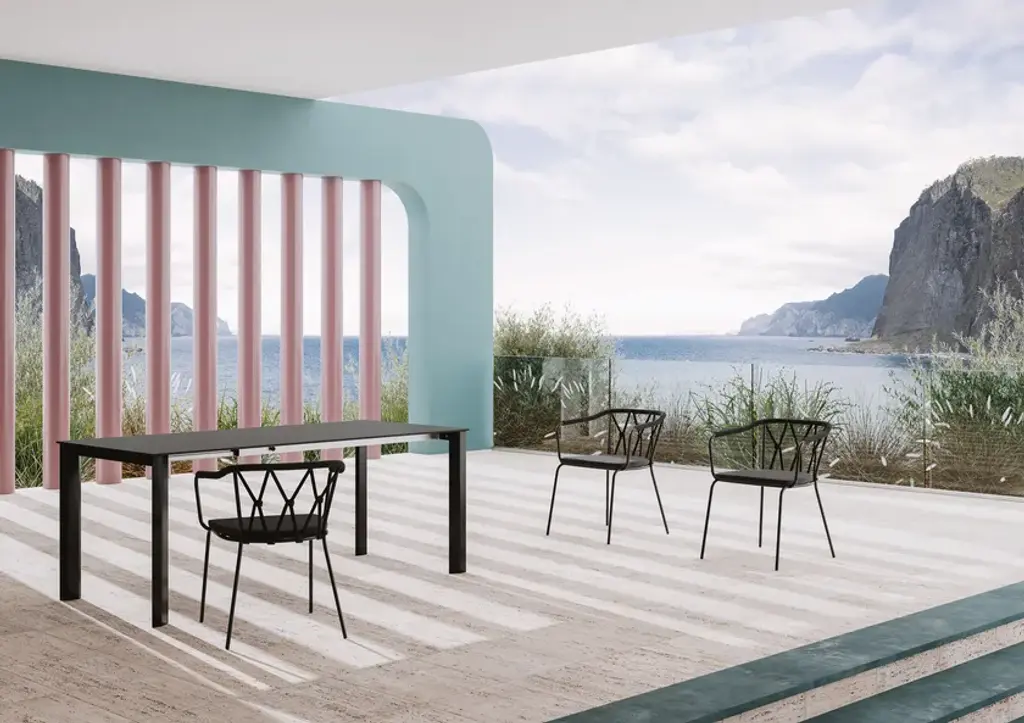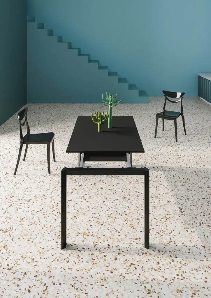 Grandangolo is the ideal table for those who want an affordable product that combines style and functionality. Characterised by essential aesthetics and a clean design with rectangular and angular shapes, it is a timeless table. Practical and resistant, it features a painted aluminium frame and a laminate top. Extendable version, with aluminium rails in different lengths; Grandangolo is a pop and extremely versatile choice, suitable for indoor and outdoor environments and can be effortlessly introduced in different settings, residential, contract and corporate.