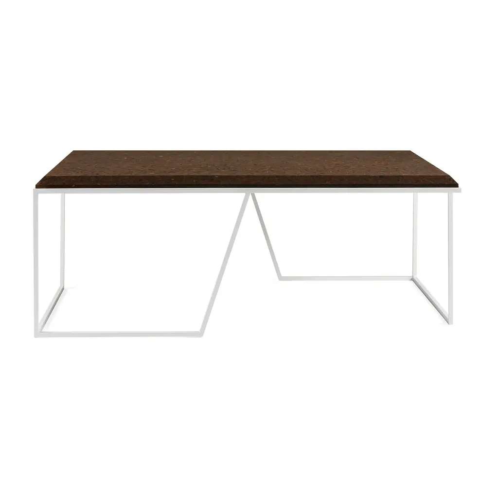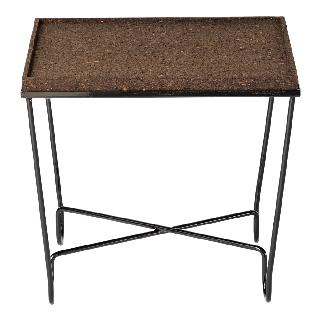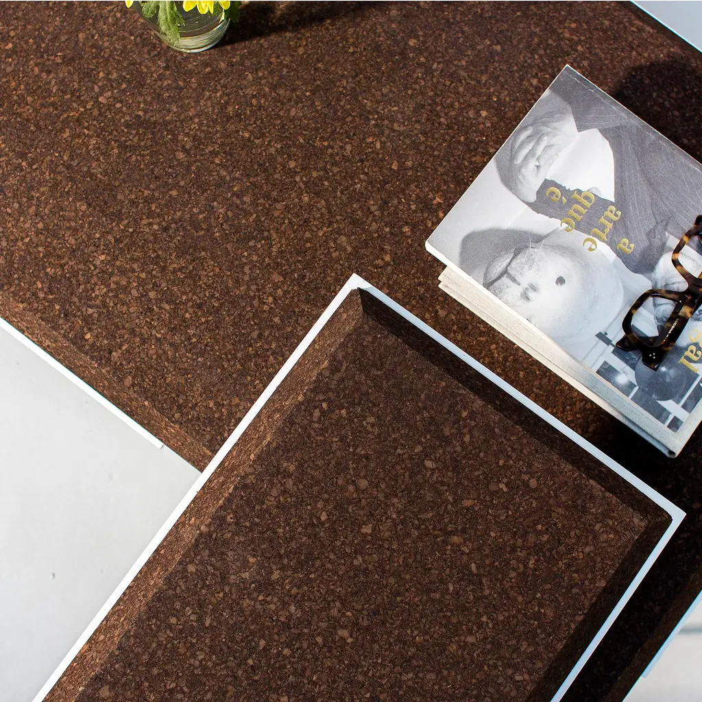 By aligning cork and steel together, the rectangular Grão Center Table juxtaposes natural elements with industrial structure. These robust materials work in balance with one another, as shown by striking and angular legs acting as a foundation for the smooth tabletop surface, resulting in a stylish yet timeless object. The Grão Center Table is available in both expanded and light cork, with black and white options for the steel legs. This versatile design makes for a comfortable fit within a wide range of environments. Labeled by Maker,Labeled by Maker