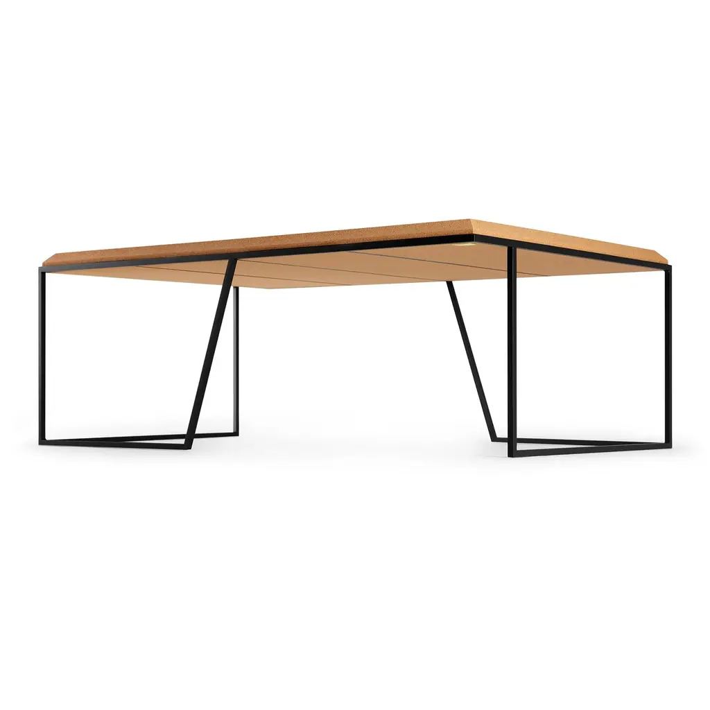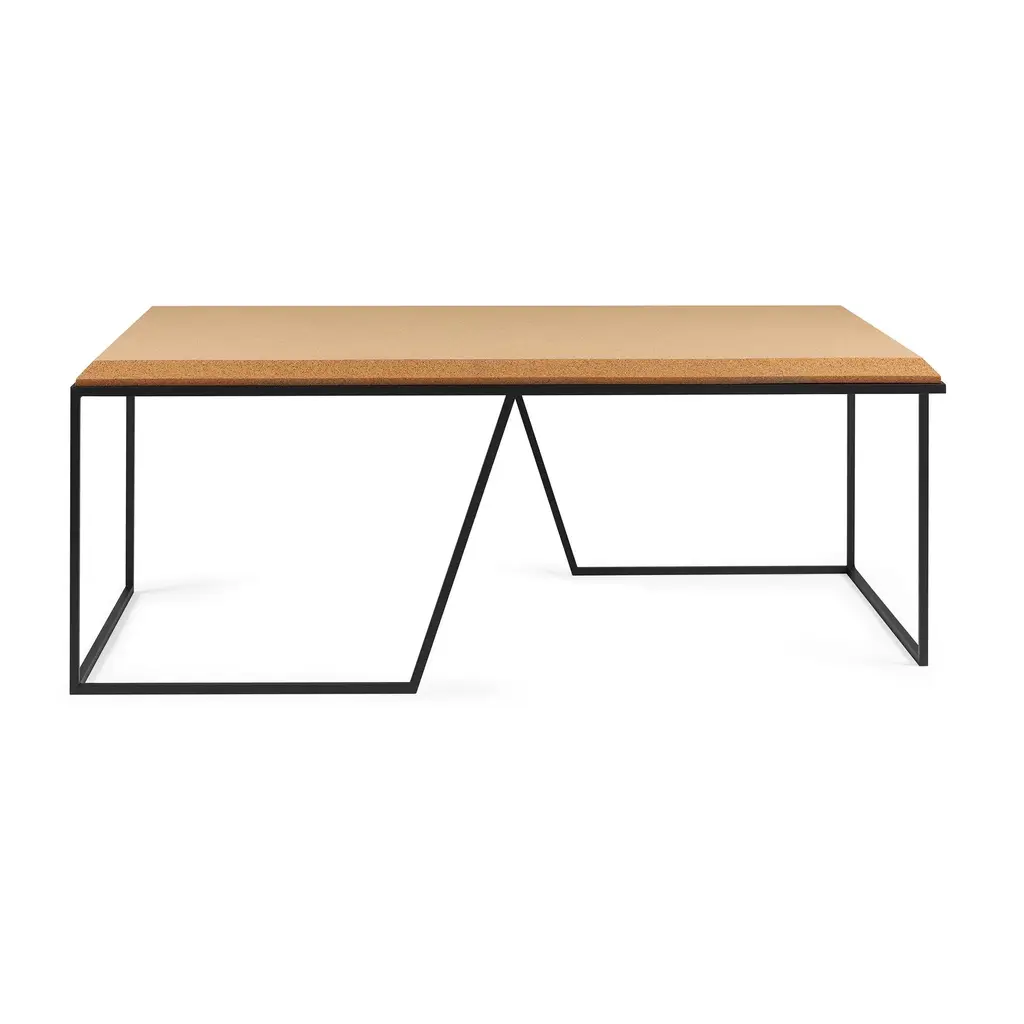By aligning cork and steel together, the rectangular Grão Center Table juxtaposes natural elements with industrial structure. These robust materials work in balance with one another, as shown by striking and angular legs acting as a foundation for the smooth tabletop surface, resulting in a stylish yet timeless object. The Grão Center Table is available in both expanded and light cork, with black and white options for the steel legs. This versatile design makes for a comfortable fit within a wide range of environments. Labeled by Maker,Labeled by Maker