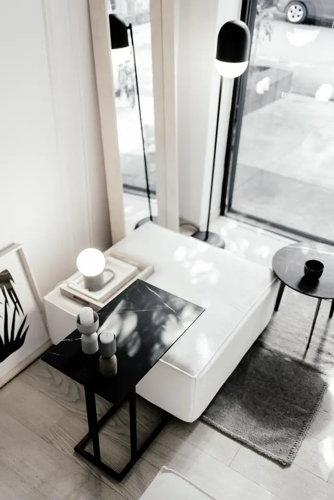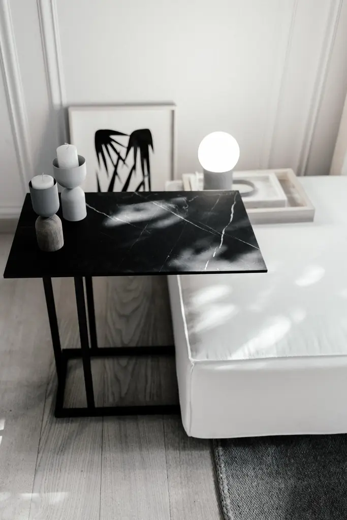 Highly functionalist, the Grapa Side Table is made up of a steel structure in electrostatic paint and covered in matte finish marble. It perceives as a light-handed piece inspired by the rationalist furniture of the 20th century. Production time: 6-8 weeks for items without marble / 13-14 weeks for marble pieces. Shipping +10 additional business days. Casa Quieta uses natural materials such as woods, stones, fabrics etc. These materials may vary in tone, veining, and cavities due to their natural origin. This is part of the inherent beauty of materials and is not considered a flaw. Due to the artisan nature of our production process, there is a +/- 3mm measurement tolerance.