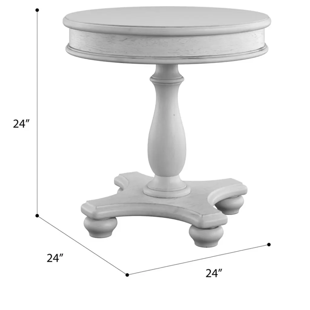 Assembles in minutes. Simply unpack, assemble with included tools, and set in place to enjoy!Exemplifies coastal style in a oyster shell color palette, bringing both personality and class to your home.Engineered to be easy to care for so you can spend time on more important thingsDimensions: 24.0in Long, 24.0in Wide, and 24.0in High