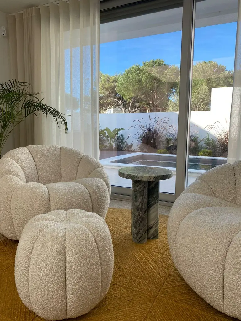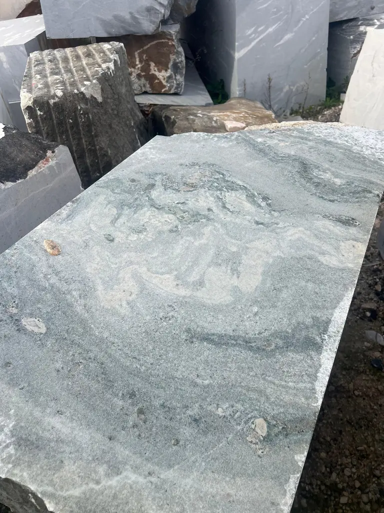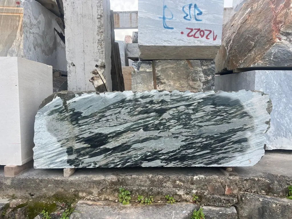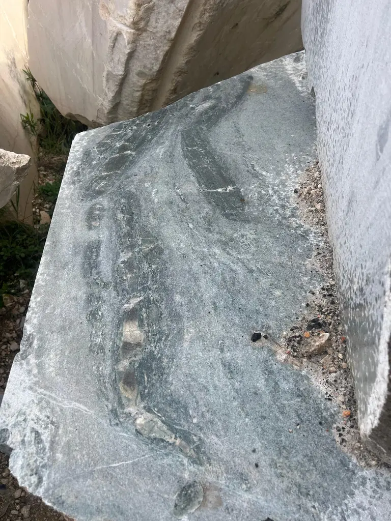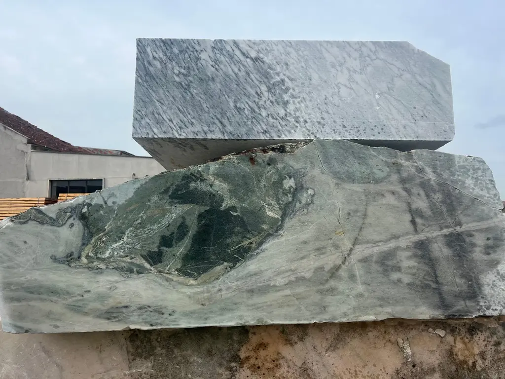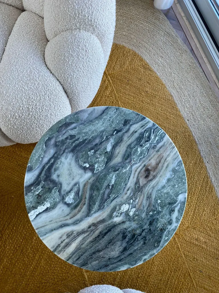 Limited Edition Marble Side Table – Sculptural & TimelessCrafted from a rare, closed-quarry marble with striking green, blue, and cream veins, this limited-edition table is a true collector’s piece. Its circular top rests elegantly on three cylindrical column legs, inspired by the sculptural designs of Mario Bellini. The bold yet minimalist form makes it a perfect statement piece—whether beside your sofa, lounge chairs or as a standalone accent.Once these marble blocks are gone, they're gone forever! Check the listing for photos of the remaining stone.Made-to-order in custom diameters—message us to explore available marbles!