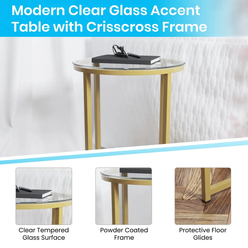 Greenwich Collection End Table - Modern Glass Accent Table With Crisscross Frame