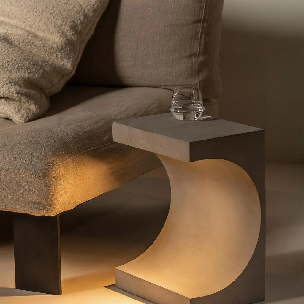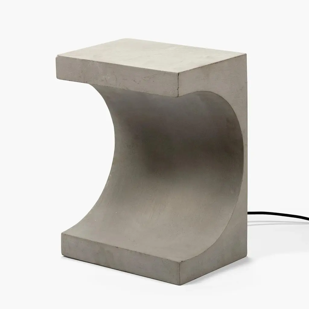 Side table Gregor with all structure in concrete includinga light under the table top with 1 bulb (interchangeable)Cable length m 2 METER.Max. Voltage 240 VOLT.Max. Wattage 5 WATT.Bulb not included.