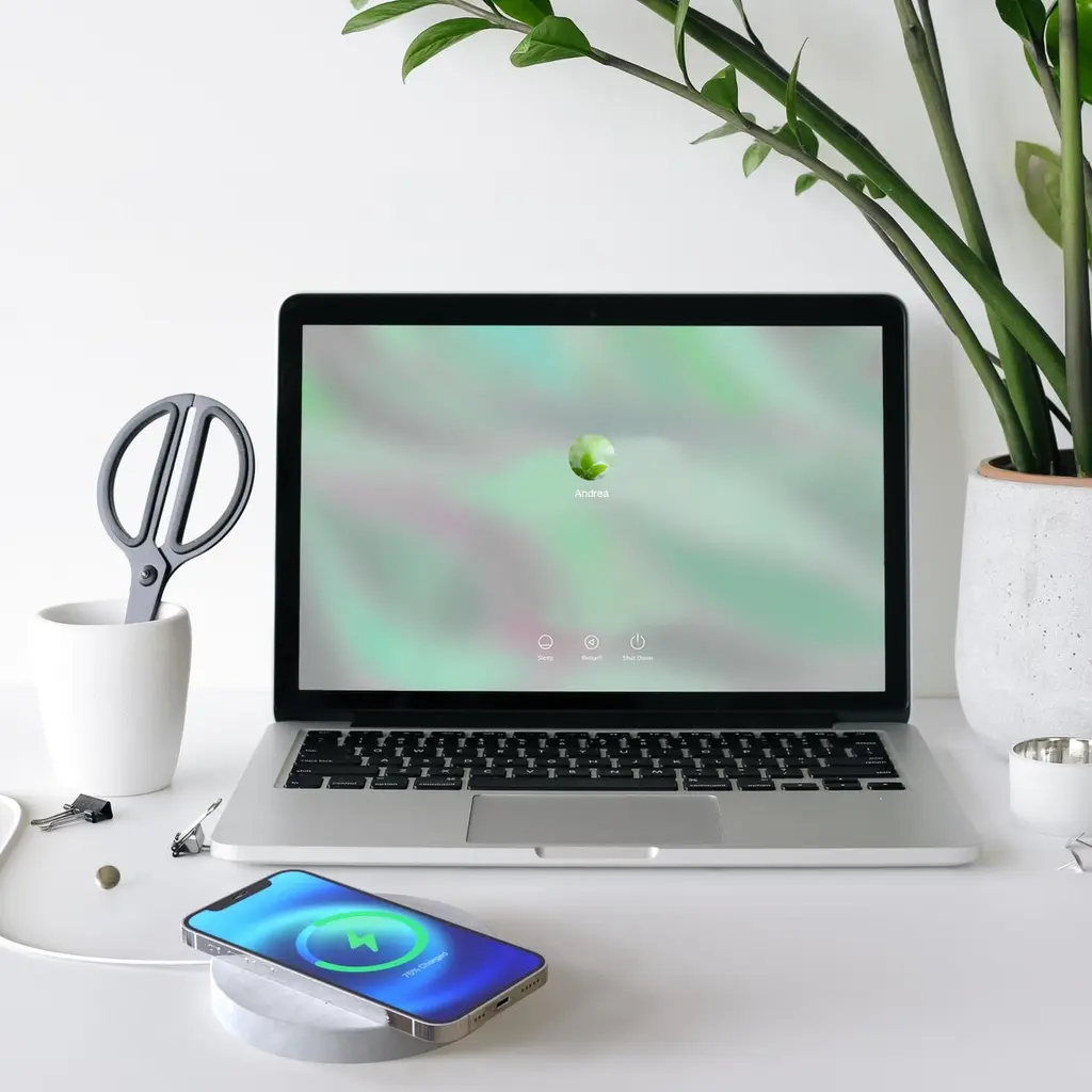 A Concrete base,that quickly charge your phone, with a touch of magic. A circle,a stone,realized with the care that Concrete requires.A powerful wireless charging technology ensures an efficient and reliable power delivery.The result is a magical object, with a natural tecno feel,a piece of art that wonderfully fits on any table or bedside table,or everywhere you imagine.Designed and manufactured in Italy at 100%.- 15w power supply included in the box.- Integrated cable: 90cm (3ft)- Base diameter: Ø 12cm (4,72in) Compatible with all Qi-enabled devices.iPhone 13 / 13 Pro / 13 Pro Max / 13 mini and pevious models;Samsung Galaxy S21 / S21 Ultra / S21 Ultra 5G and previous models;etc...(all other brands)