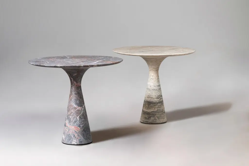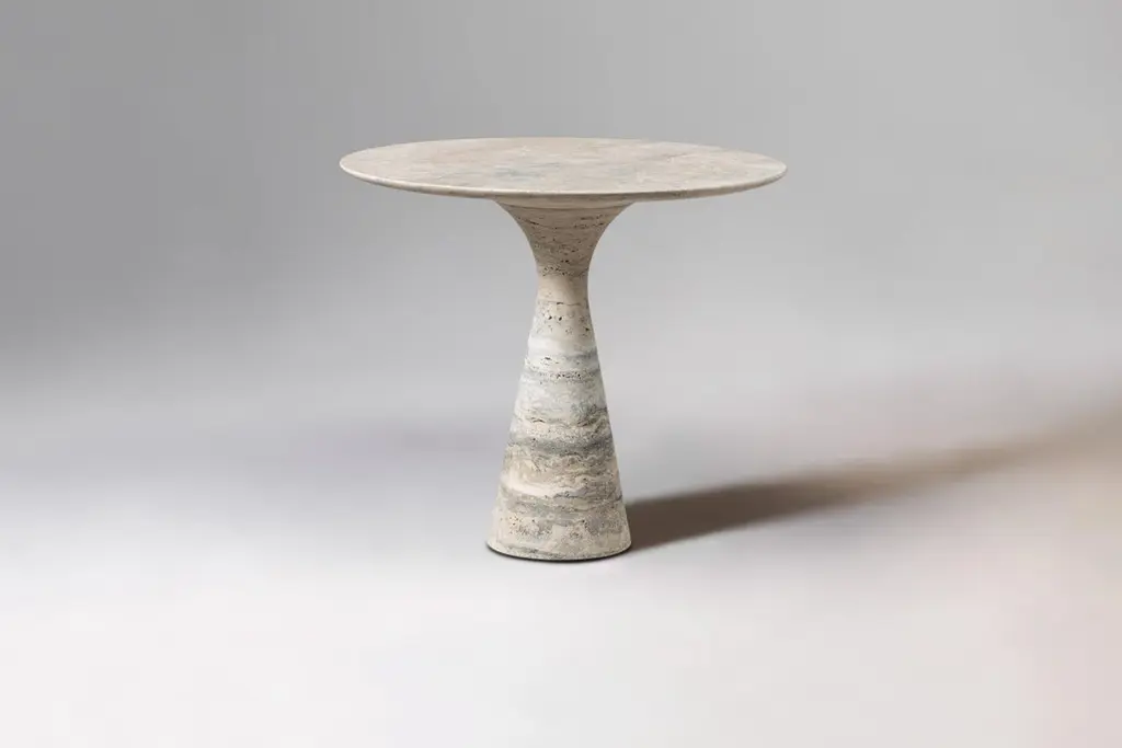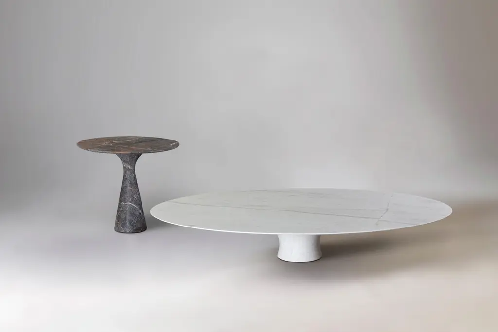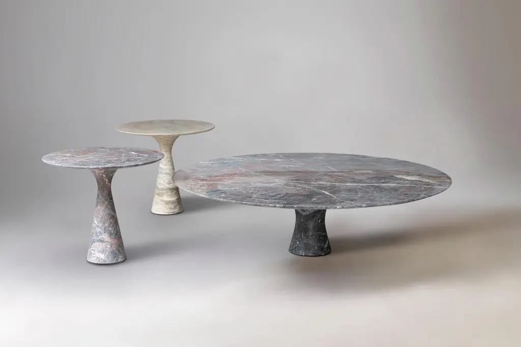 Grey Saint Laurent Refined Contemporary Marble Side Table 62/45Dimensions: diameter 62 x height 45 cmMaterials: Grey Saint LaurentAngelo is the essence of a round table in natural stone, a sculptural shape in robust material with elegant lines and refined finishes.The collection consists of a round/oval dining or conference table, side tables and lower tables.Suitable for both indoor and outdoor use!All tables are made by order and finished by hand to be sure that the tabletop and base become one pieceThe basic collection consists of 9 different marbles and different standard dimensions, however on request we make to measure.Almost any size or marble is possible!All tables are signed and numbered (the low and side tables are only signed).All tables are impregnated with Lithofin Nanotop. This protection is not visible and the marble keeps its natural look and feel. With the delivery of every table, a maintenance set of Lithofin is included.The production time is standard 12 weeks.The design Angelo is the essence of a round or oval table in natural stone, it features a sculptural form, sturdy material, an elegant line and a refined finish. Two elements, table base and top, form one whole together. The bottom is one running curve from table foot to edge. The conical connection creates a stabile whole.To show the marble in it’s most expressive character, different finishes are possible (polished, honed, brushed, striped, sandblasted & brushed). The basic collection consists of nine different types of marble and different sizes. On request this design can be executed in almost any type of marble and on measure. This table is perfectly suitable in a housing, retail or office environment. As the table is supported by one central foot it creates a lot of flexibility in seating. Executed in hard variations of natural stone suited for external use, this design can be a perfect garden table or sculpture.Angelo M/R 130 : ø 130 x 75 cmAngelo M/R 160 : ø 160 x 75 cmAngelo M/R 180 : ø 180 x 75 cmAngelo M/O 210 : 210 x 135 x 75 cmAngelo M/O 250 : 250 x 160 x 75 cmAngelo M/O 290 : 290 x 160 x 75 cm The basic collection is available in the following marbles: Kyknos, Grafite, Travertino Rosso, grey saint Laurent, Picasso green, port saint Laurent, Travertino silver, Rosso Lepanto and Bianco Statuarietto in a honed finish. On request different sizes, finishes and marbles are possible. AwardsGood Design Award – Chicago, USA (2018)People’s Choice, AZ Award – Toronto, Canada (2019)German Design Award – Frankfurt, Germany (2020).