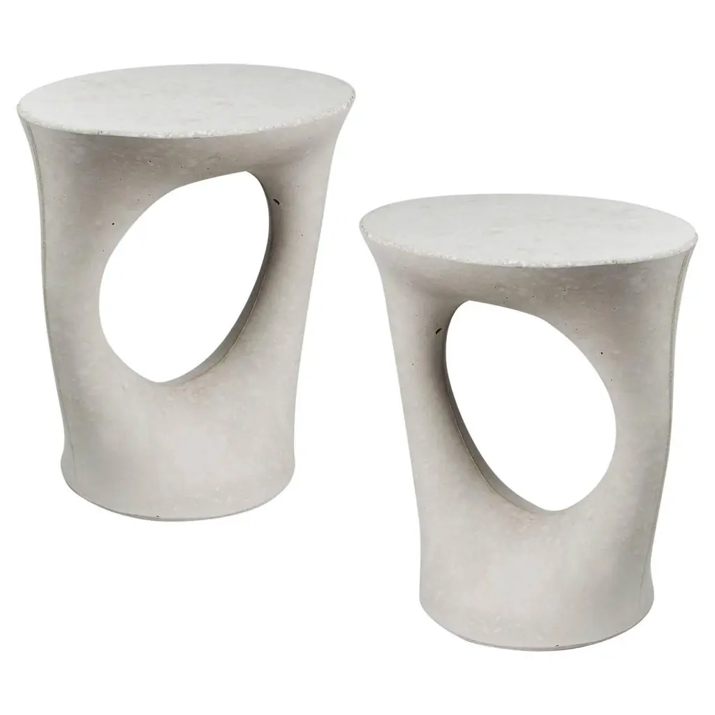 Industrial, organic and sculptural, the Kreten side tables are concrete furniture like you haven’t seen before. Original pieces are created in Souda's Brooklyn studio by casting concrete into a spandex mold. The unique material combination delivers forms that are sure to make a statement in interiors and exteriors alike.This listing is for a single table in a light grey finish. The bases of the table is finished with Industrial felt so they can be used indoors or outdoors.