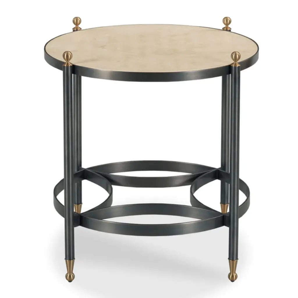 Showcase your most treasured pieces in timeless elegance with this two tone display cabinet with glass doors and shelves, part of the exclusive Celerie Kemble for Woodbridge Furniture collection. Expertly crafted from hardwood solids and cerejeira veneer, this statement-making cabinet combines form and function in a tall, sophisticated silhouette elevated on a plinth base. The beautifully grained cerejeira wood is arranged in a herringbone pattern on the base cabinet doors, adding natural movement and visual texture to its already refined design. The upper section features framed glass doors that gently reveal three adjustable shelves, perfect for displaying books, keepsakes, or curated decor. Below, two veneered doors offer covered storage space, complete with one adjustable interior shelf which is ideal for tucking away linens, serving pieces, or other essentials. A 17 Auden finish paired with brass hardware creates a warm, two-tone contrast, giving the piece a designer look that works seamlessly in both modern and traditional interiors. The cabinet’s interior is finished in Sherwin-Williams 6185 Escape Gray, offering a subtle, stylish backdrop that enhances your displayed items. With its generous dimensions and solid construction, this display cabinet with glass doors and shelves delivers both durability and charm. Whether used as a cabinet with glass doors in a formal dining space, a two-tone cabinet in a living room, or a display cabinet in a hallway, this versatile piece is built to elevate your home. Backed by the quality craftsmanship of Woodbridge Furniture, it’s more than storage - it’s a sophisticated design statement.