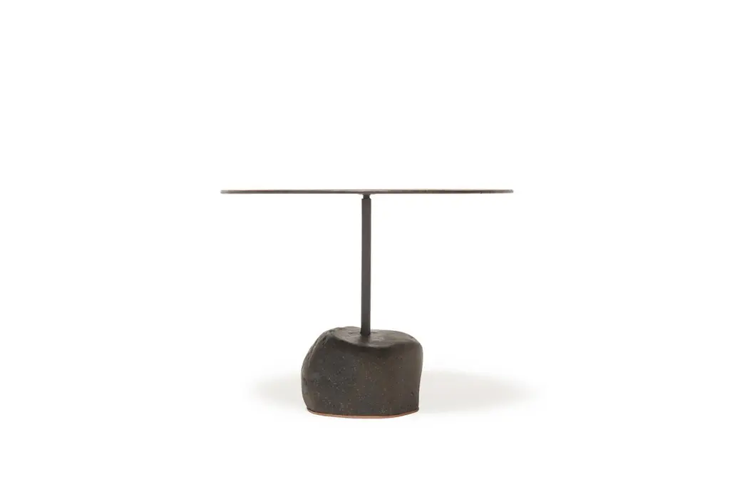 Conceived while in lockdown in 2020, the Grounded Collection from Stephen Kenn is a mediation on being grounded in peaceful creative work, while enduring forced isolation from community. The concept of the collection is a play on the dual definitions of the word "grounded," from "not allowed to participate in social or recreational activities" to "well-balanced and sensible."This side table features a river rock base and a vegetable tanned leather top, which has been hand-aged to a rich patina using oils and waxes.Each piece in this collection is carefully made by hand, from the welding and finishing of the steel frame, to the cutting and polishing of the stone base, and the cutting, stitching, and staining of the leather. All items in this collection are made to order at our studio in Los Angeles, and each piece will be unique. The river stones will vary in color and shape, and the leather treatment will have natural color variation.