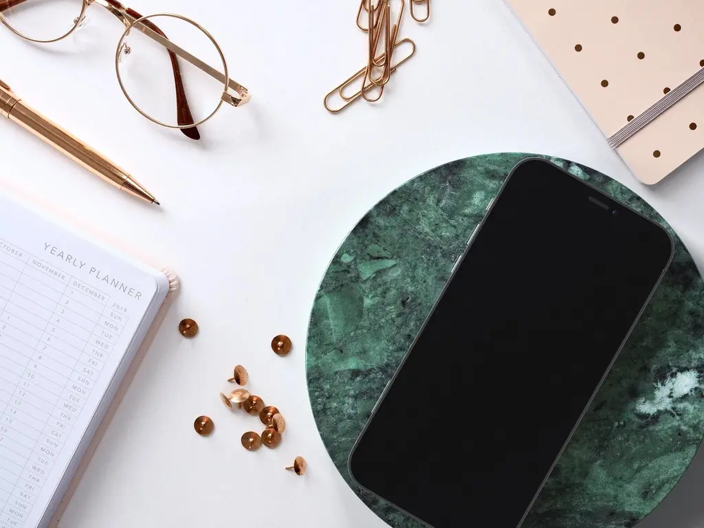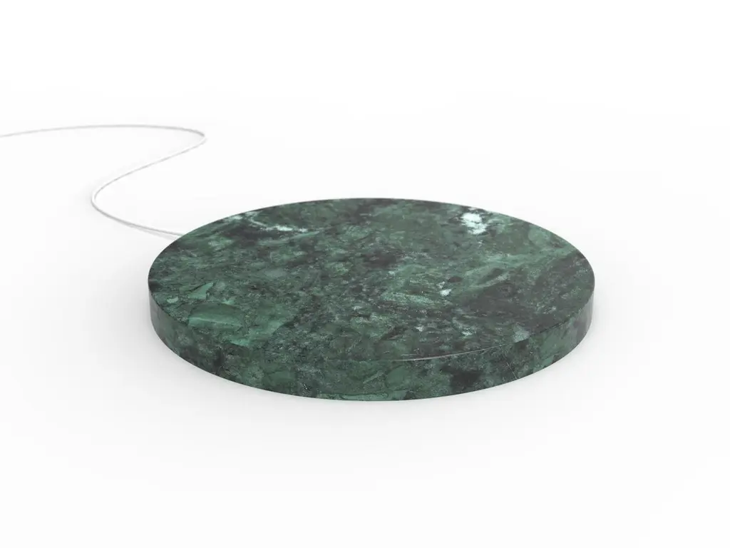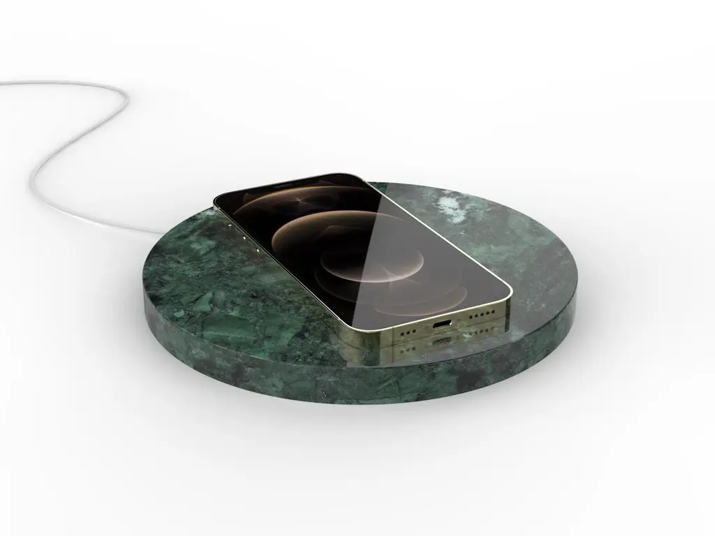 A marble base,that quickly charge your phone, with a touch of magic. A circle, a stone, realized with the care that marble requires.A powerful wireless charging technology ensures an efficient and reliable power delivery.The result is a magical object, with a natural feel,a piece of art that wonderfully fits on any table or bedside table,or everywhere you imagine.Designed and manufactured in Italy,100% Italian marble- 15w power supply included in the box.- Measures: Integrated cable: 90cm (3ft)- Base diameter: Ø 18cm (7.09 in) Compatible with all Qi-enabled devices.iPhone 13 / 13 Pro / 13 Pro Max / 13 mini and pevious models;Samsung Galaxy S21 / S21 Ultra / S21 Ultra 5G and previous models;etc...(all other brands)