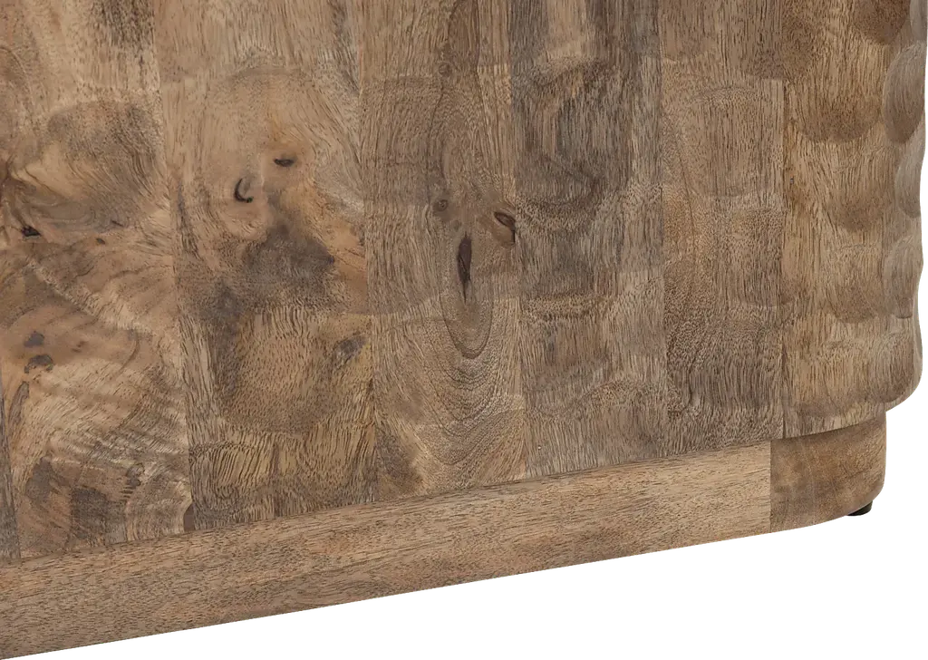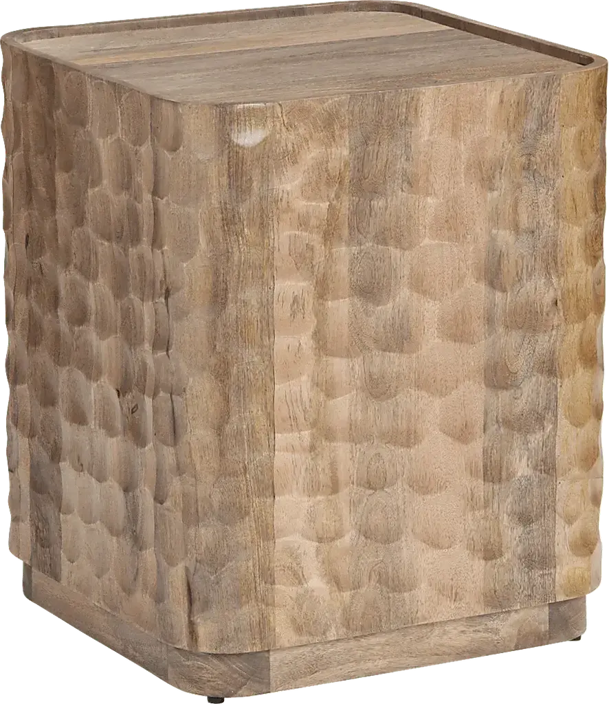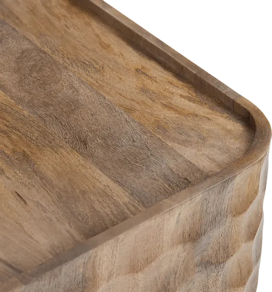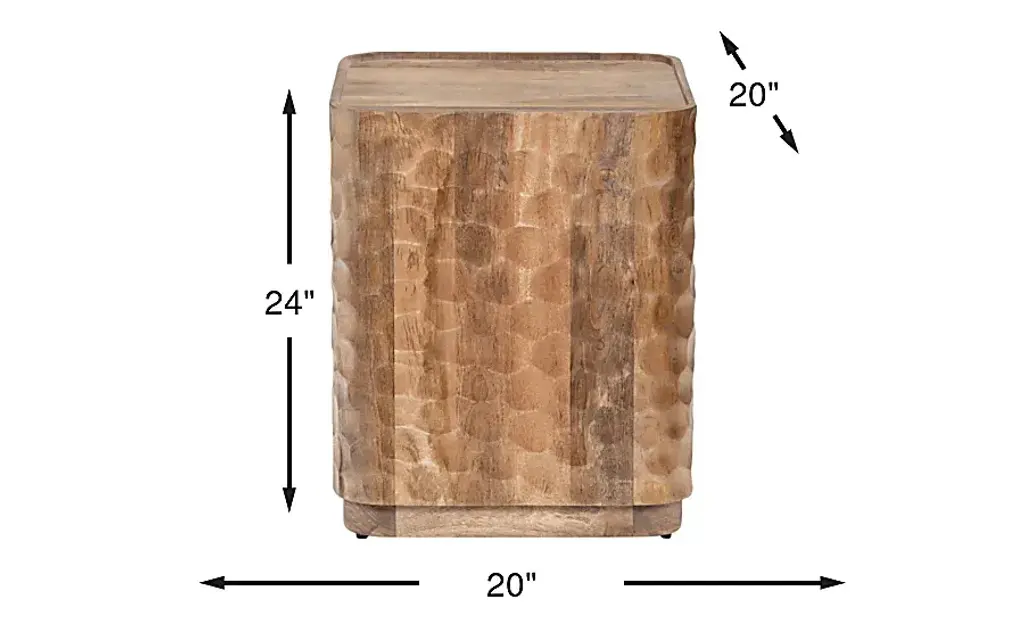 Round out your living room set up with the Guillory end table. Stained in a brown finish, this piece is crafted with an ornate design that features touches of modern and coastal style. Its impressive plinth base is accented by a dimpled design with irresistible texture.