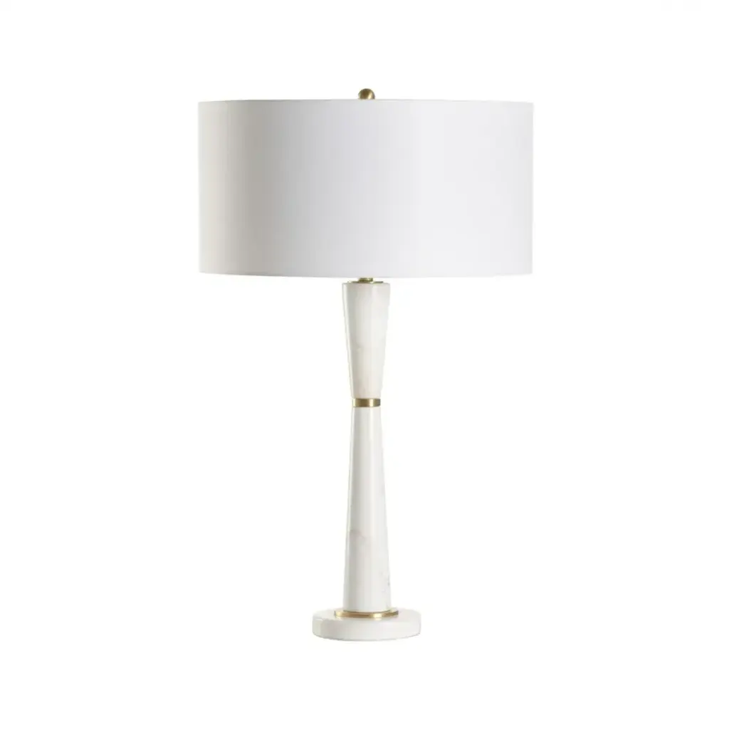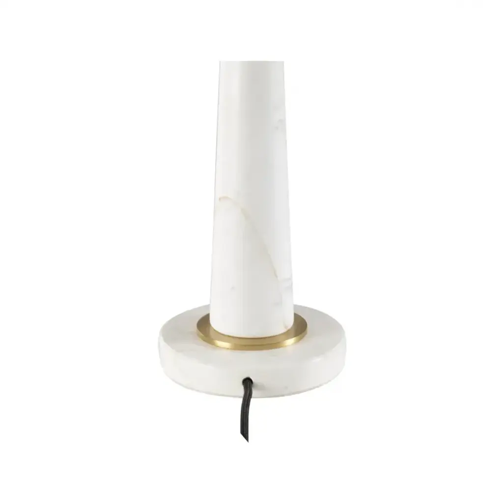 The elegant Guinevere Lamp is the perfect blend of timeless luxury and modern design. Crafted from smooth white marble, the lamp's sleek, tapered silhouette is both refined and sophisticated. Brass accents strategically placed at the base and neck add a touch of warmth and a subtle hint of glamour, enhancing the lamp’s overall elegance. The crisp white drum shade offers a soft, ambient glow, creating a serene atmosphere in any room. Ideal for bedside tables, living rooms, or office spaces, this lamp brings a classic yet contemporary aesthetic that complements a variety of décor styles.