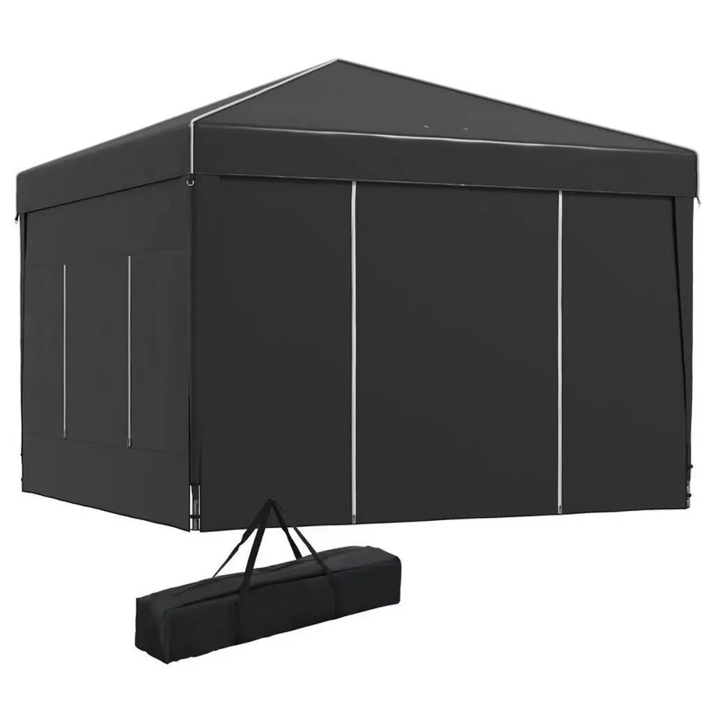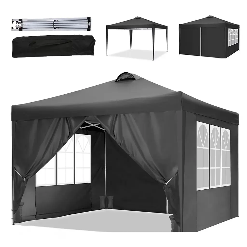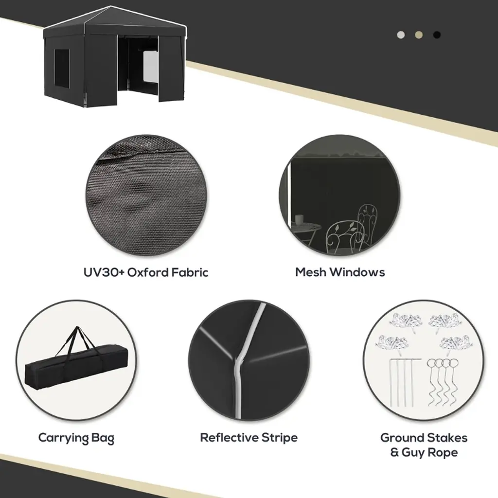 Gulches 9.7' X 9.7' Pop Up Canopy With Sidewalls, Portable Tent With 2 Mesh Windows & Reflective Strips, Includes Carry Bag For Outdoor Events (Black)