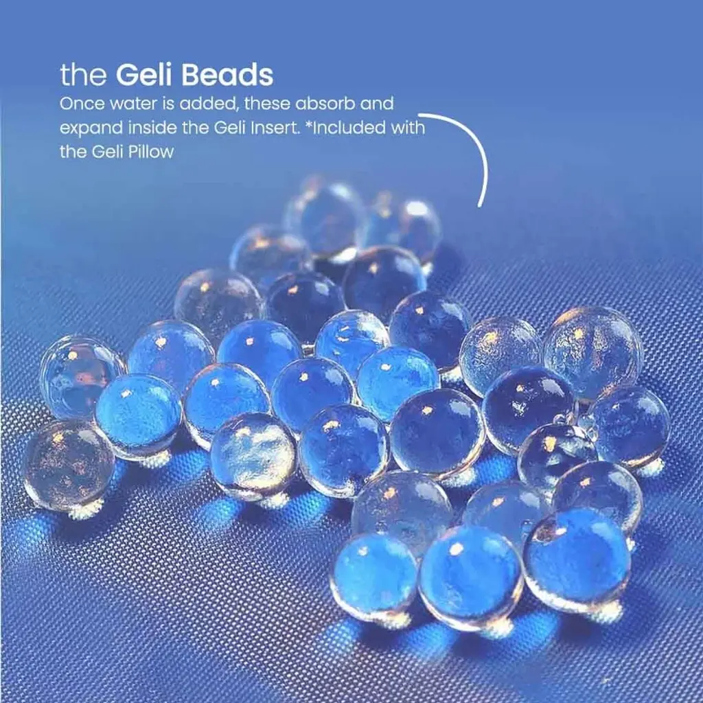 Elevate cool sleep with Gulches Cold Pillow! Water-activated Geli beads absorb heat all night. 3-layer adjustable design (Granulated Whisper Foam, Polyester Fiber Fill, Geli insert) + 2-sided cooling cover (Polyester MDPE/Lyocel-Poly mesh) for custom comfort.