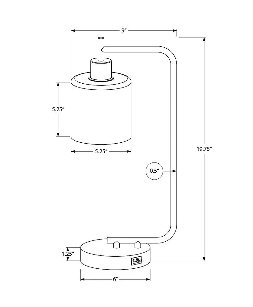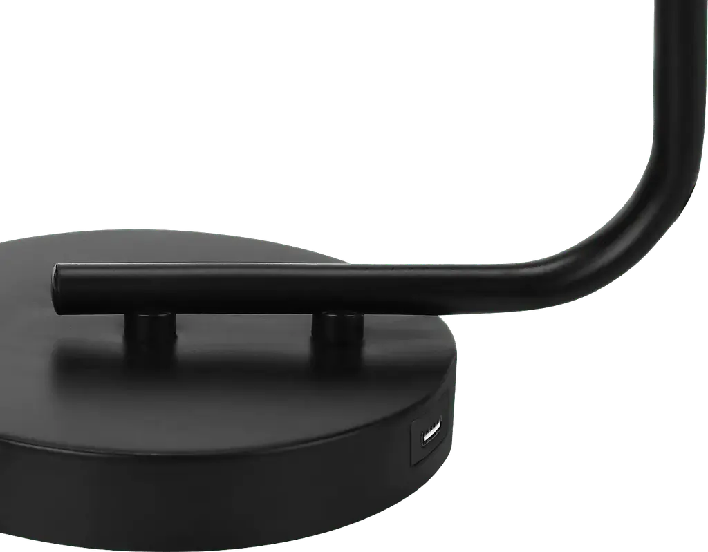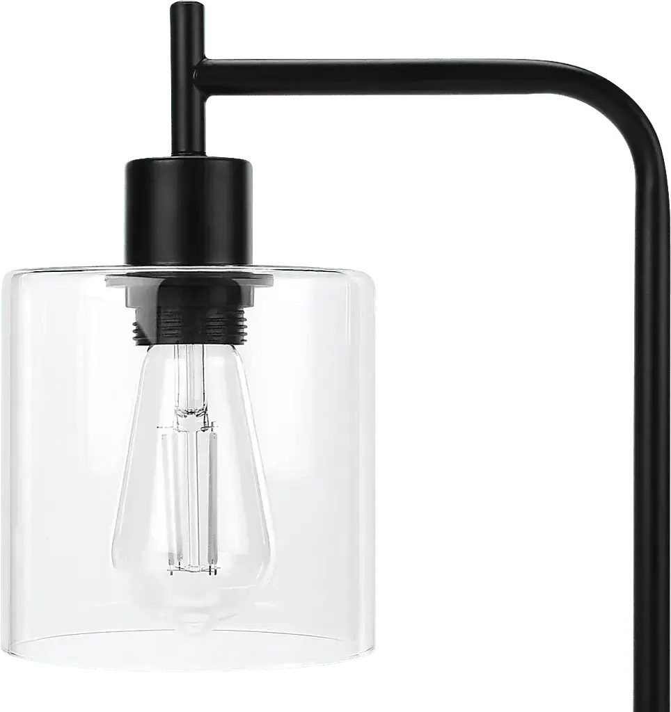 Whether you need a cool looking task lamp to brighten up your work area, a nightstand or bedside table, the trendy and stylish Hafeli Cay Black Lamp with the USB port included is the perfect choice Great for brightening up any office, living room, or bedroom, this modern accent lighting sits on a sleek, black metal body with a slender arm, topped with a clear glass shade for a nostalgic industrial vibe. Partial assembly may be required.
