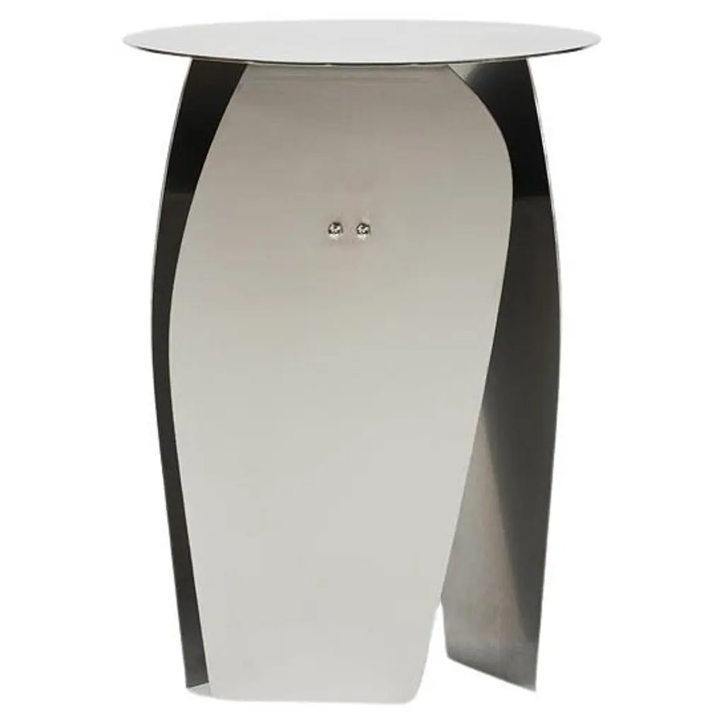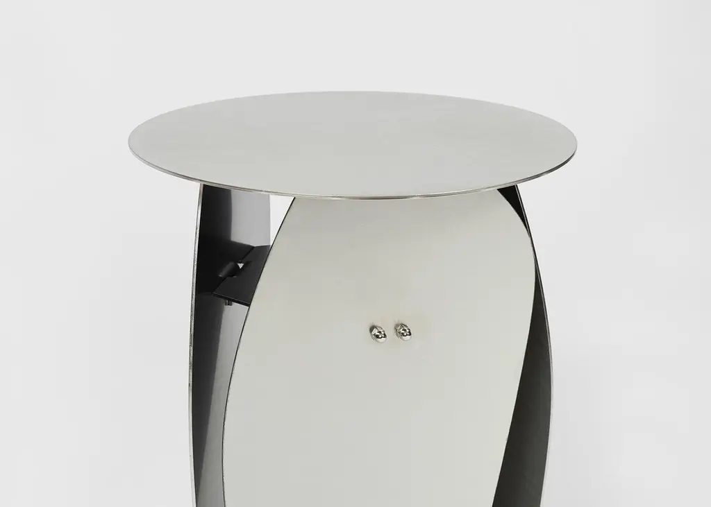 The Haley Steel Table by ATELIER AXO exclusively for St. Vincents.The Haley Steel Table is a side table made from 3mm stainless Scotch Brite steel. All pieces are numbered and signed by hand by atelier axo.Made in Copenhagen, the Haley Steel Table is in stock and immediately available. ATELIER AXO, founded in 2019 by designer Rose Hermansen and architect Caroline Sillesen, is a Copenhagen-based cross-disciplinary design- and architecture practice specialized in small scale architecture and detail-oriented interiors for a diverse range of projects including fine art galleries, retail boutiques, restaurants, office planning, and private housing.Emphasizing site-specific solutions, the studio also designs furniture and objects that are not only striking but also sustainable. Their approach is grounded in a contextual understanding of the spaces they work with, whether it involves actively contrasting or collaborating with the surroundings. Sustainability is a top priority for the practice, reflected in their careful material selection, socially sustainable production, and a focus on longevity and quality.