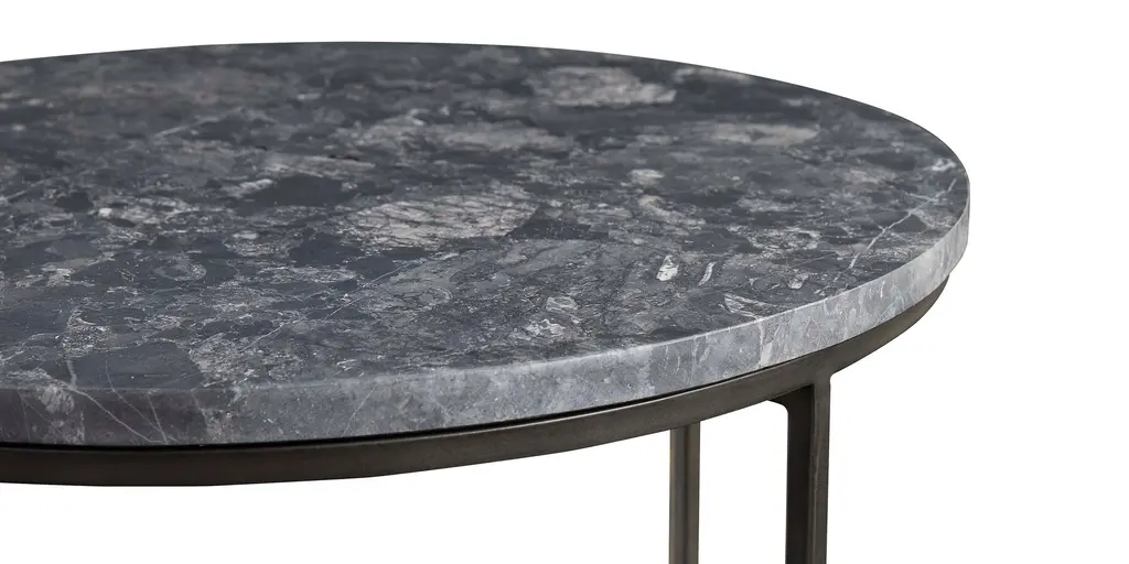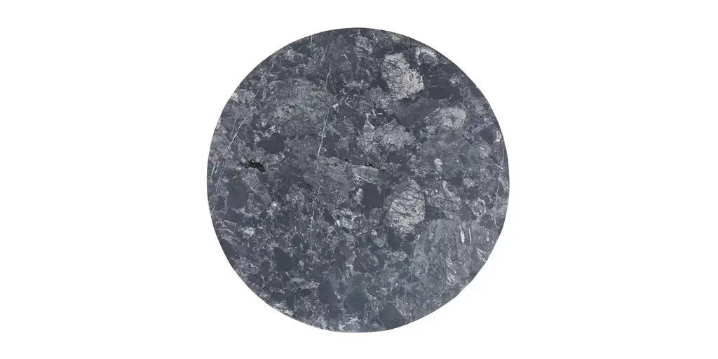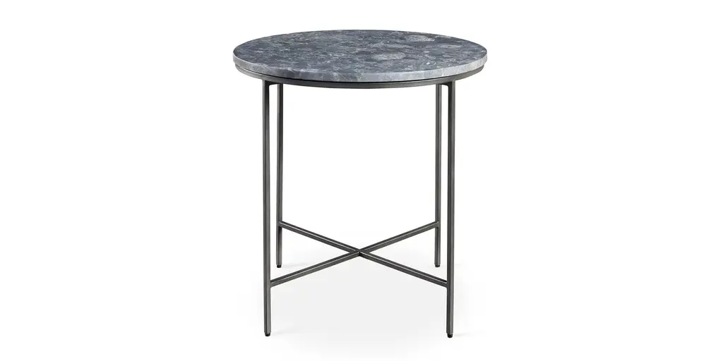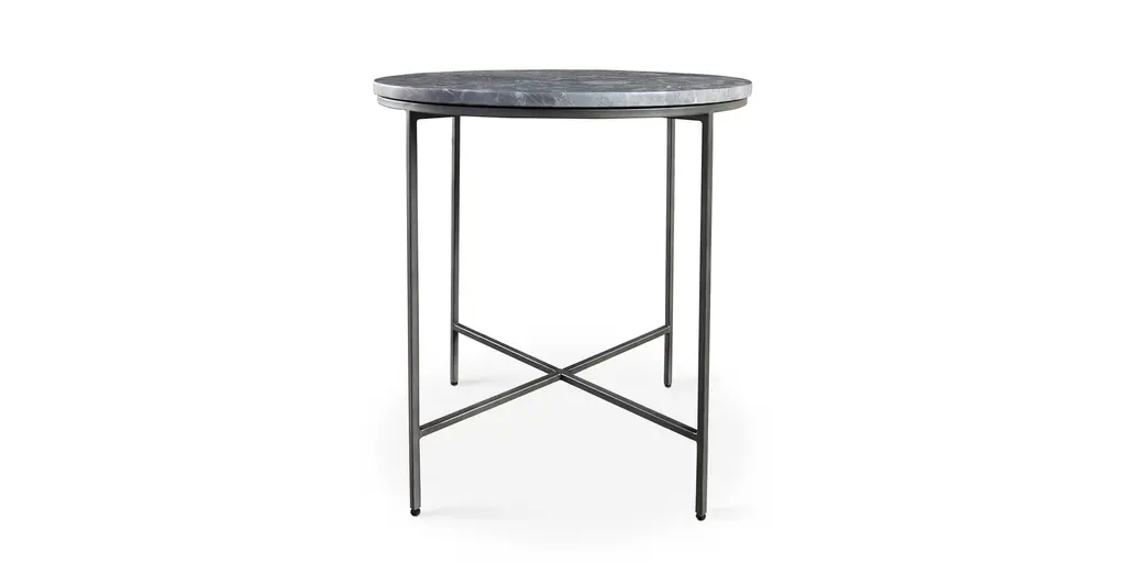 In the Halifax end table, natural stone and cast iron mingle for a stunning midcentury effect. Place it next to a sofa, or between two accent chairs. With its 24 width, theres plenty of space for a lamp and your current novel or magazine. The solid cast iron base is powder coated in smooth dark pewter finish. Choose from two stone surface options - Chocolate Travertine or Black San Luis - with color variations that complement many color schemes. Chocolate Travertine brown shows the character of the mountains of Puebla, with warm variations of tones created by the different types of sand as they solidify through the passage of time. Black San Luis stone is solid marble with shades of black, blue and grey, extracted from the mountains of the Sierra Madre Oriental in central Mexico with colors that exude sobriety and elegance. Levelers ensure stable footing on any surface.