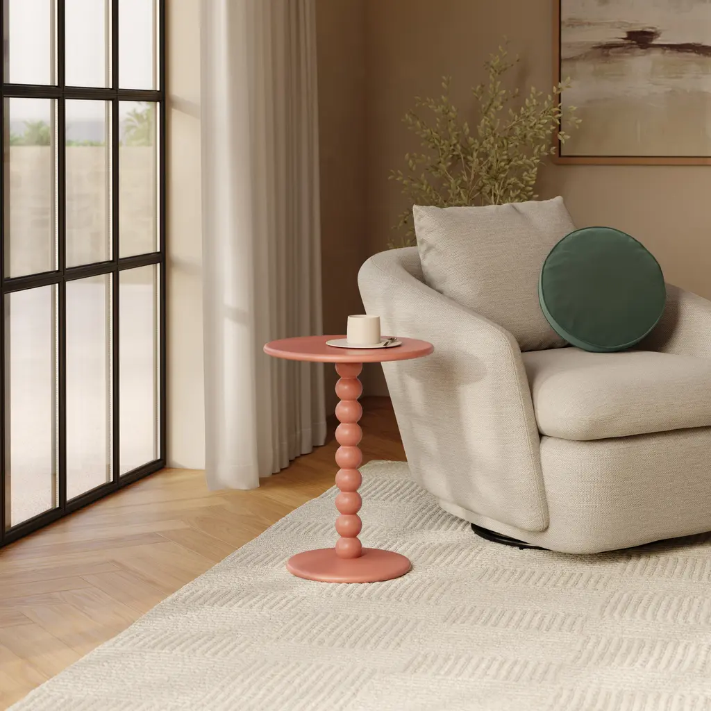 With its reliable solid wood construction and striking wood-turned beaded frame, Hallie is a fun and quirky addition to your living room. This classic design seamlessly complements any room, adding a touch of sophistication without stealing the spotlight from your other furniture. Plus, it's not just any side table — it's your stylish drinks holder!