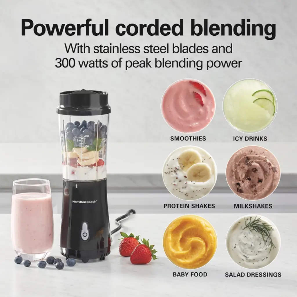 Hamilton Beach Singleserve Blender 51101bv: Portable Personal Blender, 12 Oz Capacity, Dishwasher-safe, 175 Watts, Black/gray