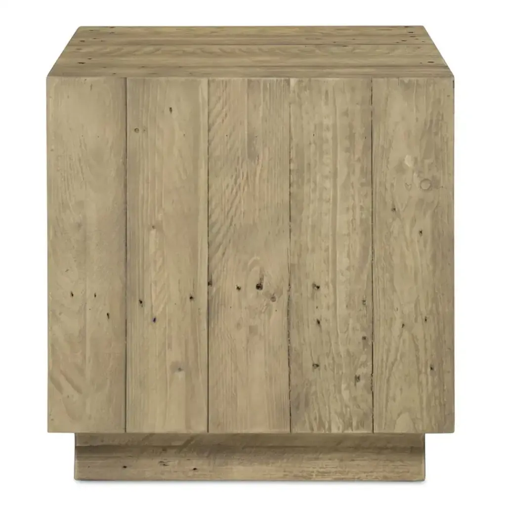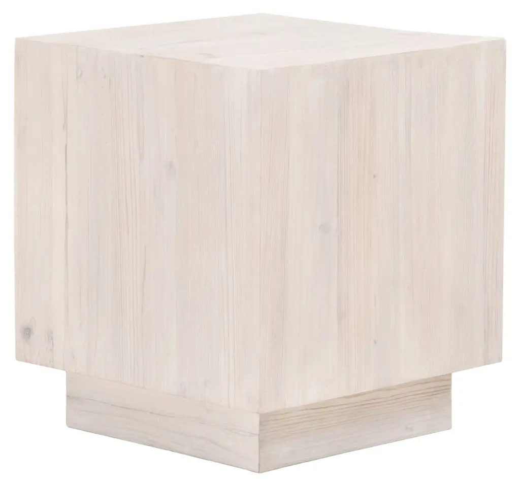 Both handsome and eco-friendly, this side table is crafted of reclaimed pine whitewashed to showcase its distinctive grain. The simple silhouette allows the beauty of the pine to command the lion's share of the attention.