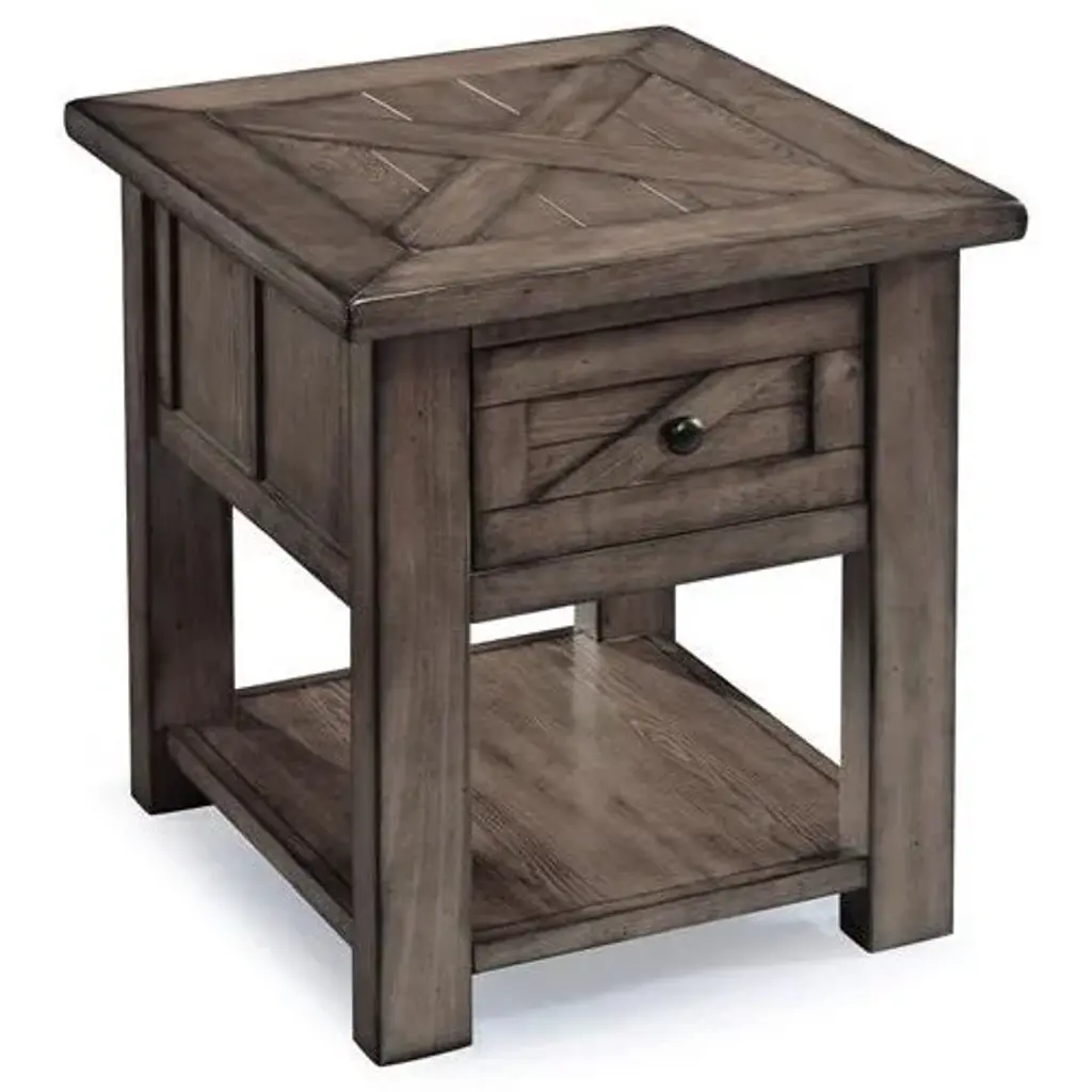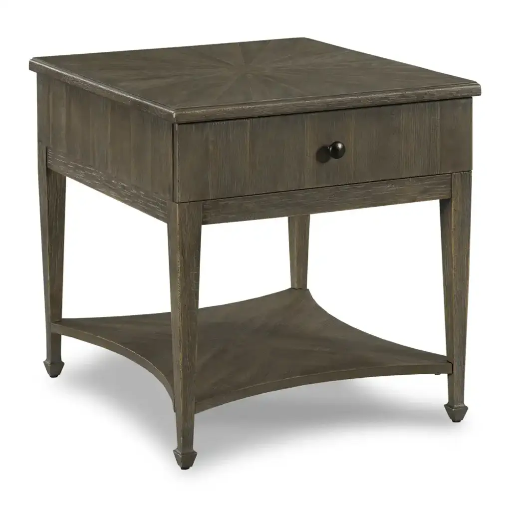 The Hancock Rectangular Drawer End Table blends rustic charm with refined craftsmanship, featuring cathedral grain white oak in a casual two-tone finish. Its hand-antiqued application enhances its relaxed, vintage-inspired aesthetic, making it a warm addition to any space. A spacious drawer offers discreet storage, while the lower shelf provides functionality without compromising style. Designed with thoughtful details, this versatile table balances character and practicality, seamlessly complementing a variety of interiors.