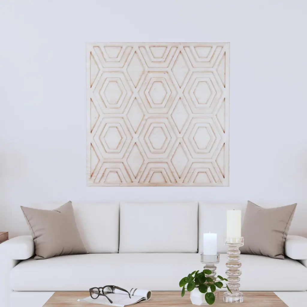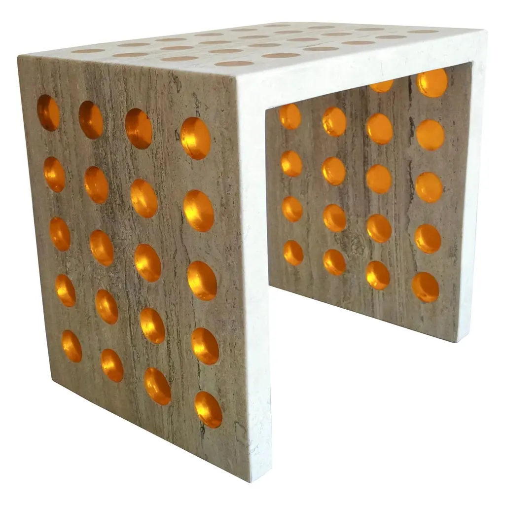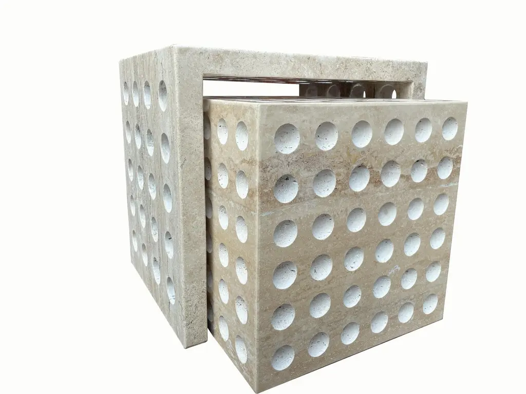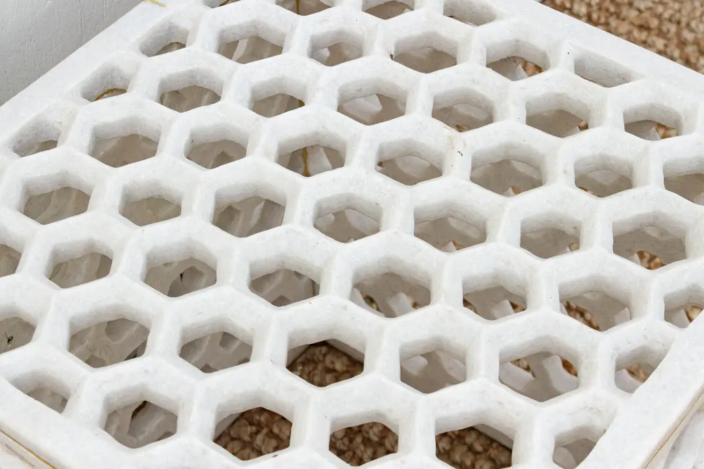 Modern meets Mughal with this captivating marble side table. Handcrafted from pristine marble, this piece draws inspiration from the intricate Jali window designs of 16th-century palaces. The base and top features a mesmerizing beehive geometric pattern, meticulously carved for a touch of timeless elegance.