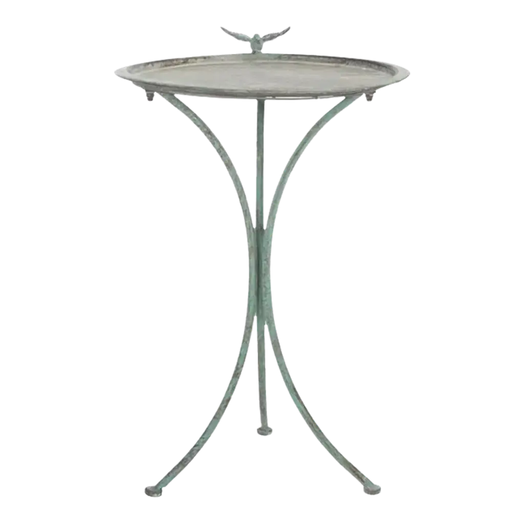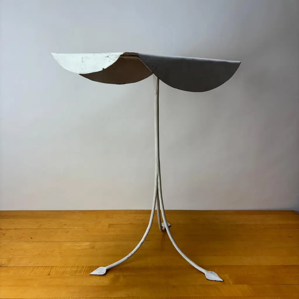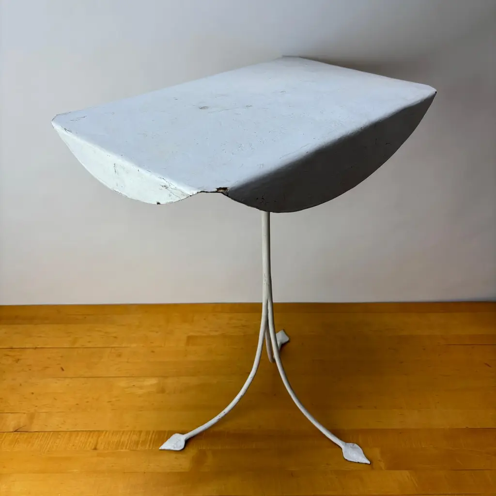 Hand Forged Tri Pod Side Table W/ Faux Bois Drape Top White