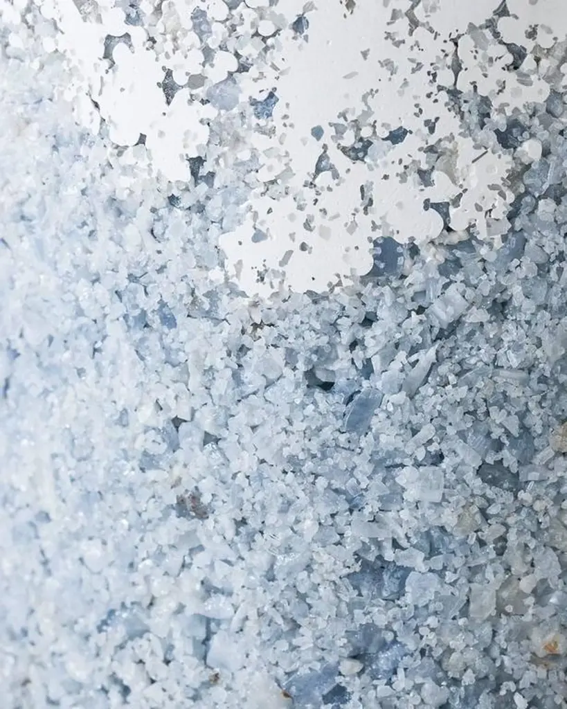Hand Made Blue Calcite And White Plaster Drum, Side Table By Samuel Amoia