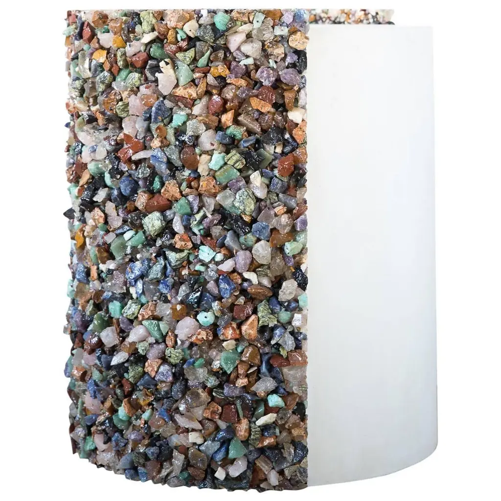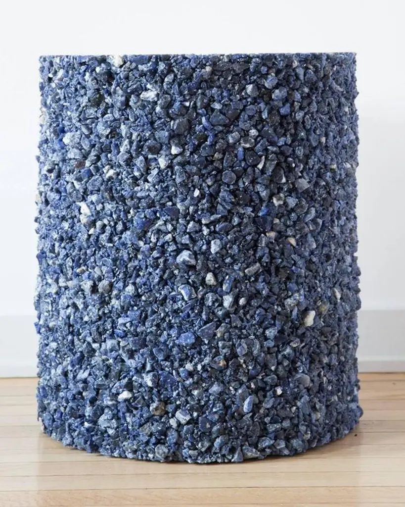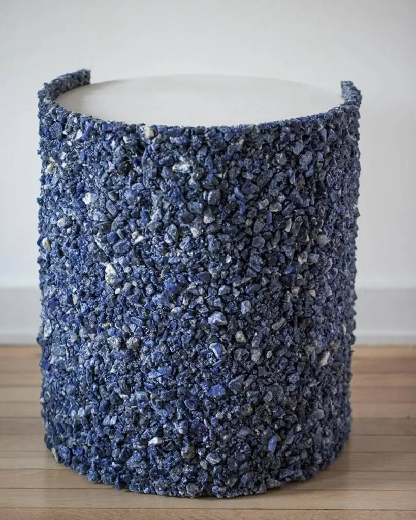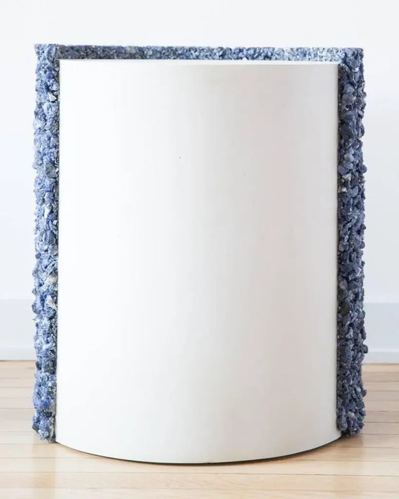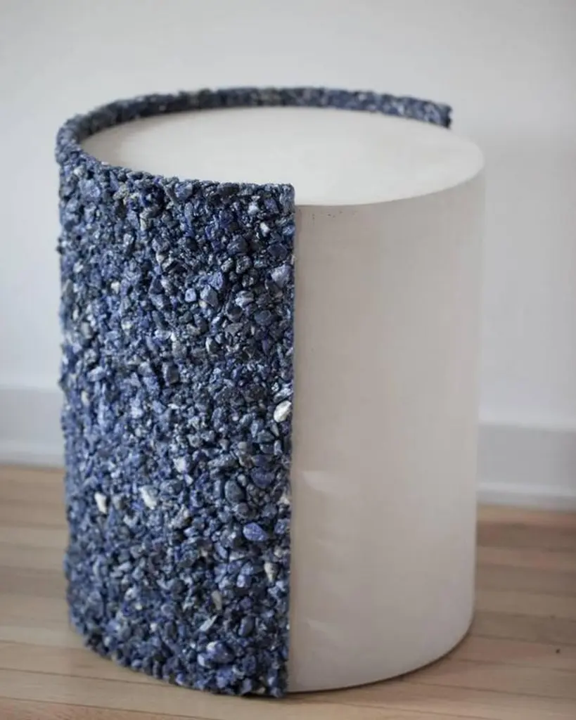 Hand Made Blue Sodalite And White Plaster Drum, Side Table By Samuel Amoia